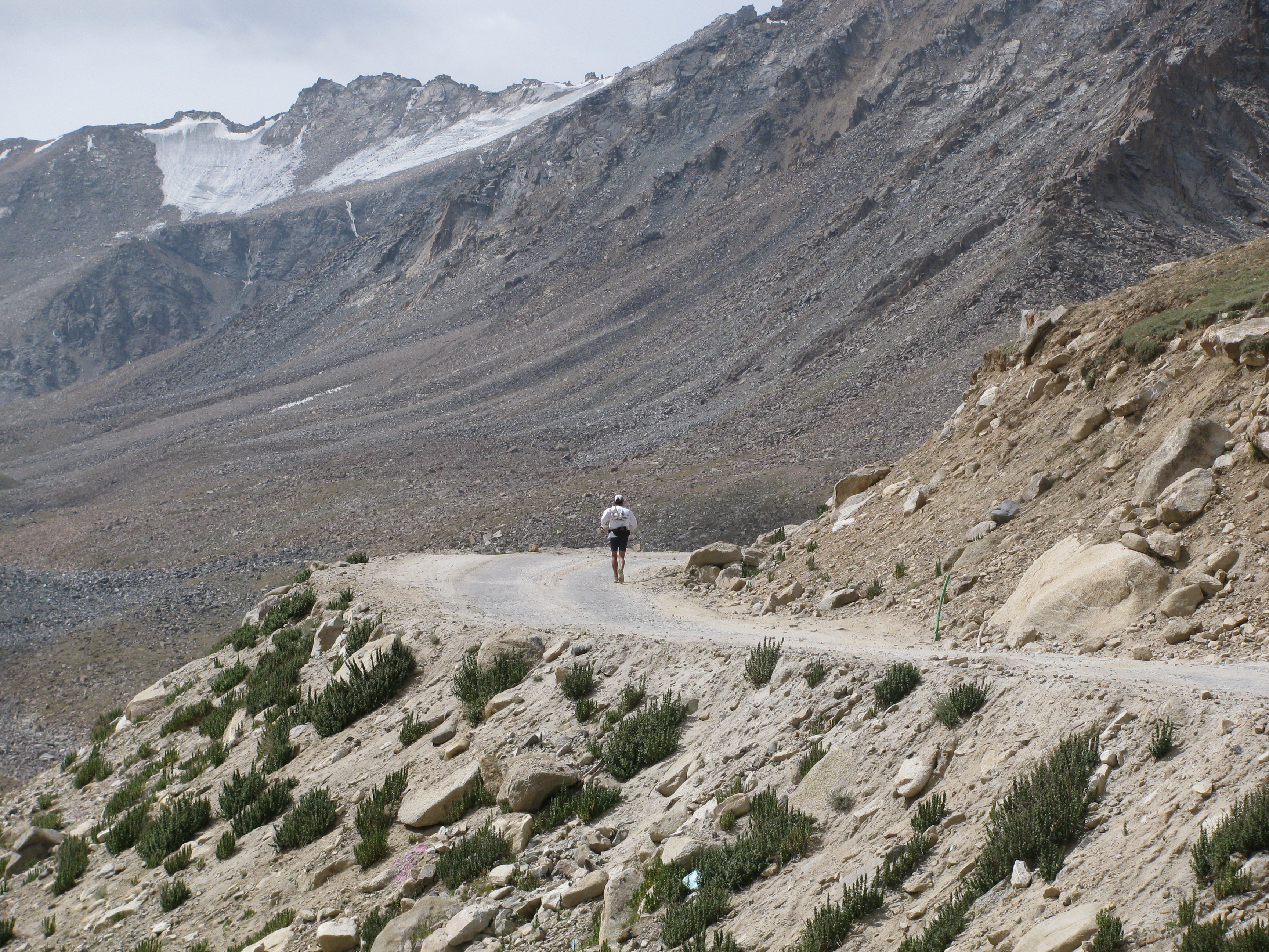 I stole out from the camp housing race officials, support staff and runners and walked in the direction of the 17,700ft-high Khardung La. Next day, six people would run 222 kilometres at an average altitude of over 14,000 feet. More walker than runner, I wanted to taste the effort. Couple of turns on the road later, the camp disappeared from sight behind me. I found the privacy needed to confront my physical limitations. Out of sight, I commenced jogging. The first minute, perhaps two, were fine. It was magnificent landscape, morning traffic was as yet mild and the winding, open road appeared a mythical tarmac for the lone runner. Slowly my breathing became pronounced. A mild headache manifested. I slowed down. It was a relatively flat stretch of road, rather a gentle gradient. What would it be like on real uphill? I wondered. I was gaining my first insights into running at altitude.