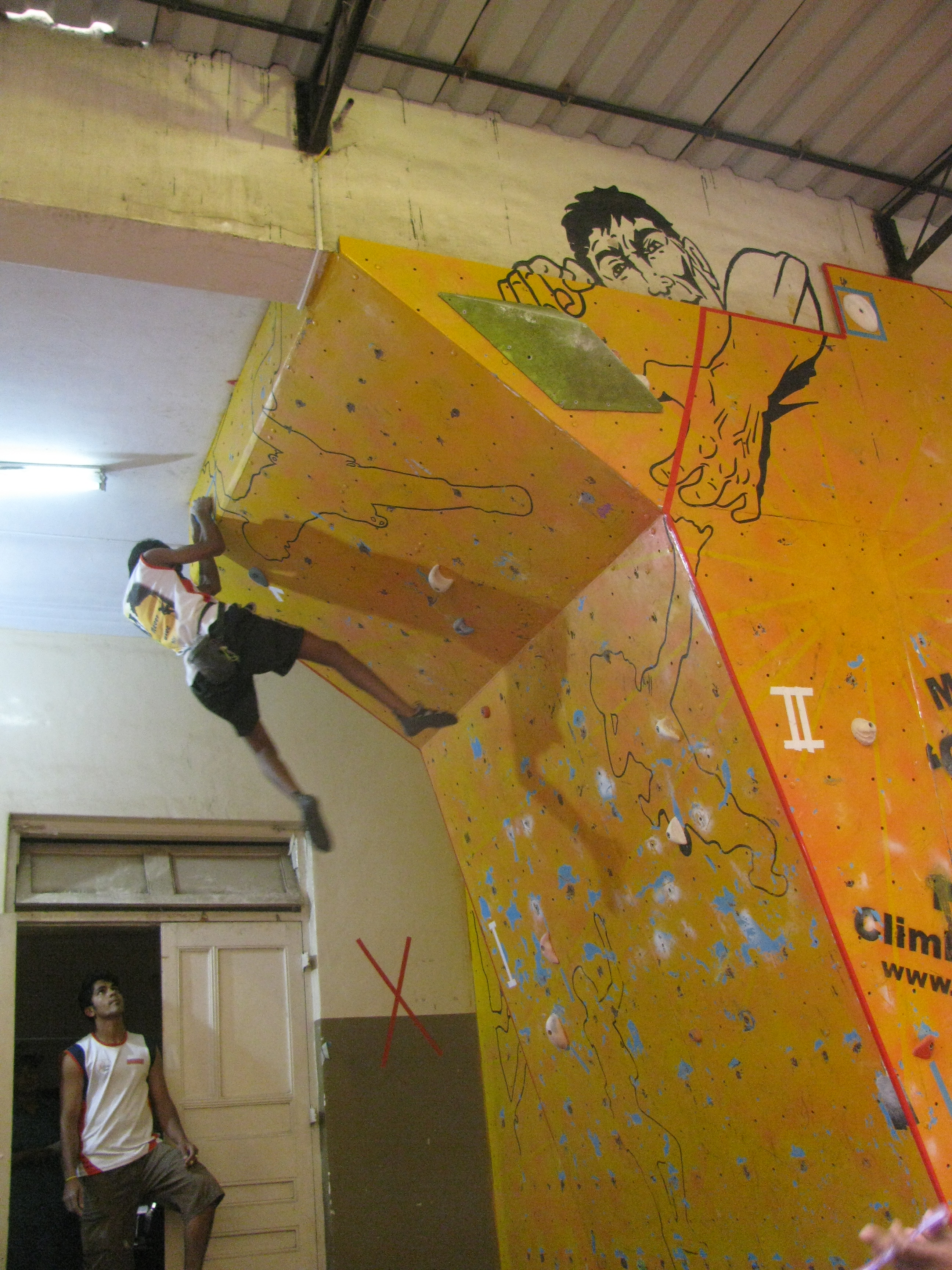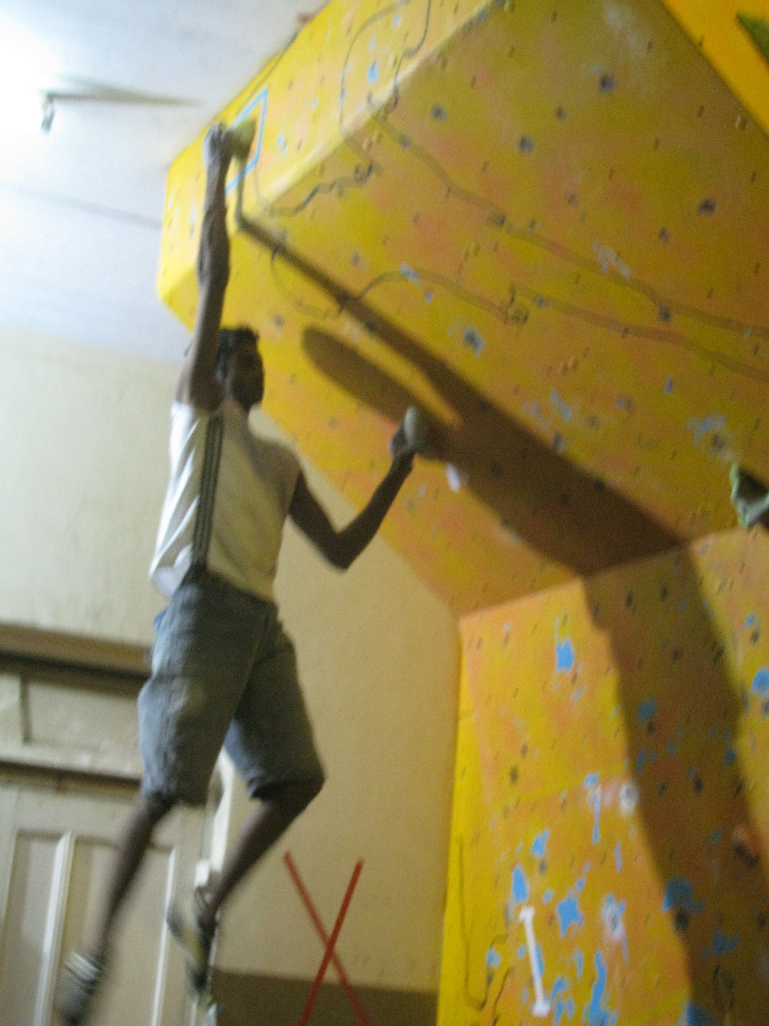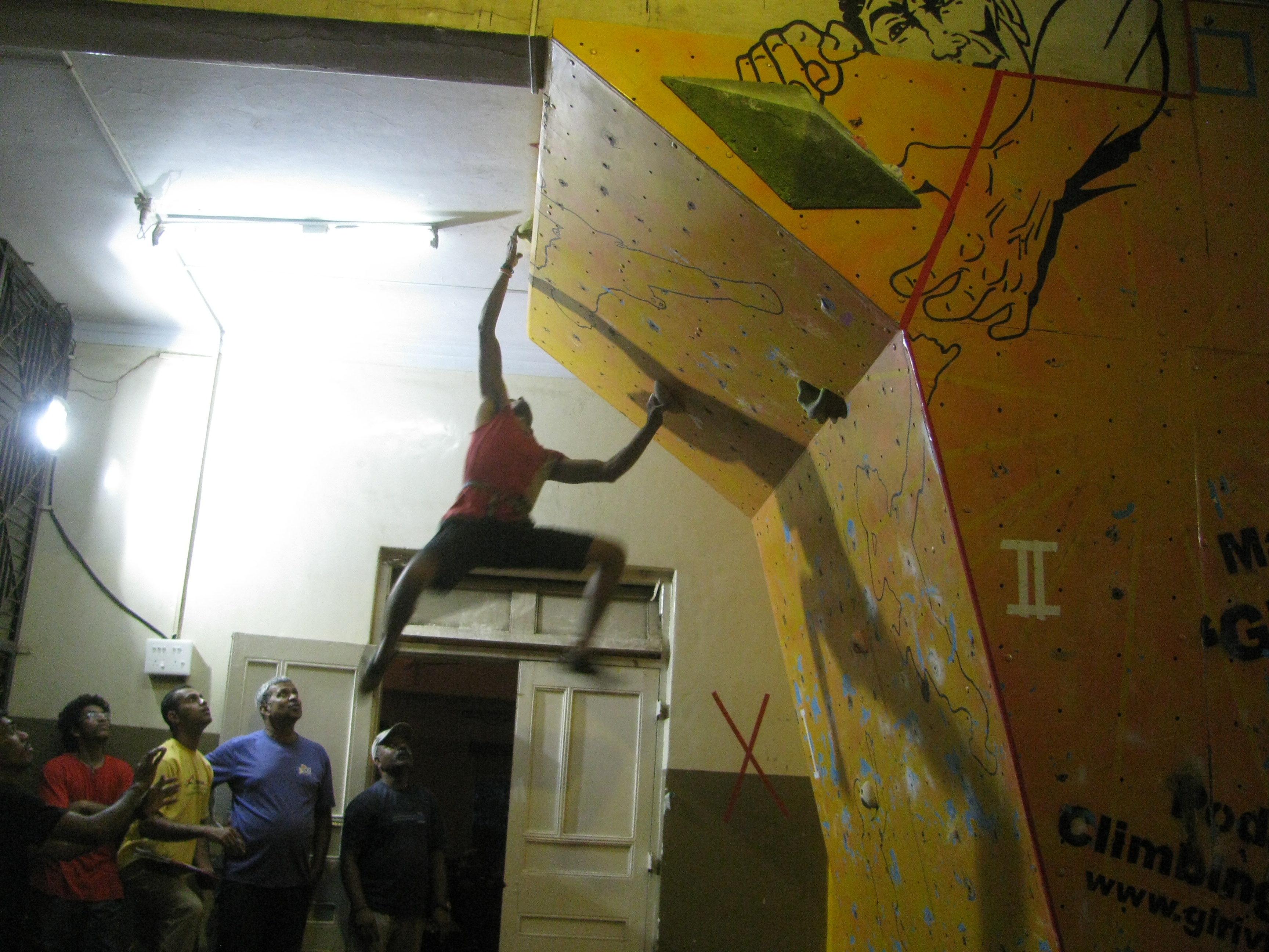 Those days, every weekend was spent climbing. Soon after I registered for the competition, preparations began. I had to do what I could. I was employed at a newspaper. After work, I frequented a friend’s house to train. Abhijit Burman aka Bong had a tiny climbing wall made of a single plywood sheet fitted with artificial holds. This was his old house, before he acquired a new place where he built a wall such that he seemed to be living under it. And that was before he lost his living space to climbers moved in to live under his wall! I trained my way. Young people do a lot of dynamic moves. It featured lunges and leaps. It was the popular climbing style. I was too much a bag of injuries to risk that. Besides I didn’t like dynamic moves. They make for great visual. But outside competition environment and pre-protected sport routes, most climbers wouldn’t do it. Yet that’s what competitions strive to be – great visual. It is activity squeezed into spectacle format. Without it where’s the fun for participant and arena? Not to mention business model, for media and sponsors don’t go where there isn’t spectacle. All sports therefore have their competitive half. We may have run originally as hunters engaged in lengthy pursuit of prey. But there is no competition on the planet more engaging than ascertaining who is the fastest runner around even if you can hold that pace for only less than ten seconds. The stadiums of ancient Greece and the arenas of ancient Rome are thus among the longest standing truths about human behavior. They have since hardened into markets deciding how sport should be. My upcoming zonal competition was a tiny, tiny version of that legacy by market.
