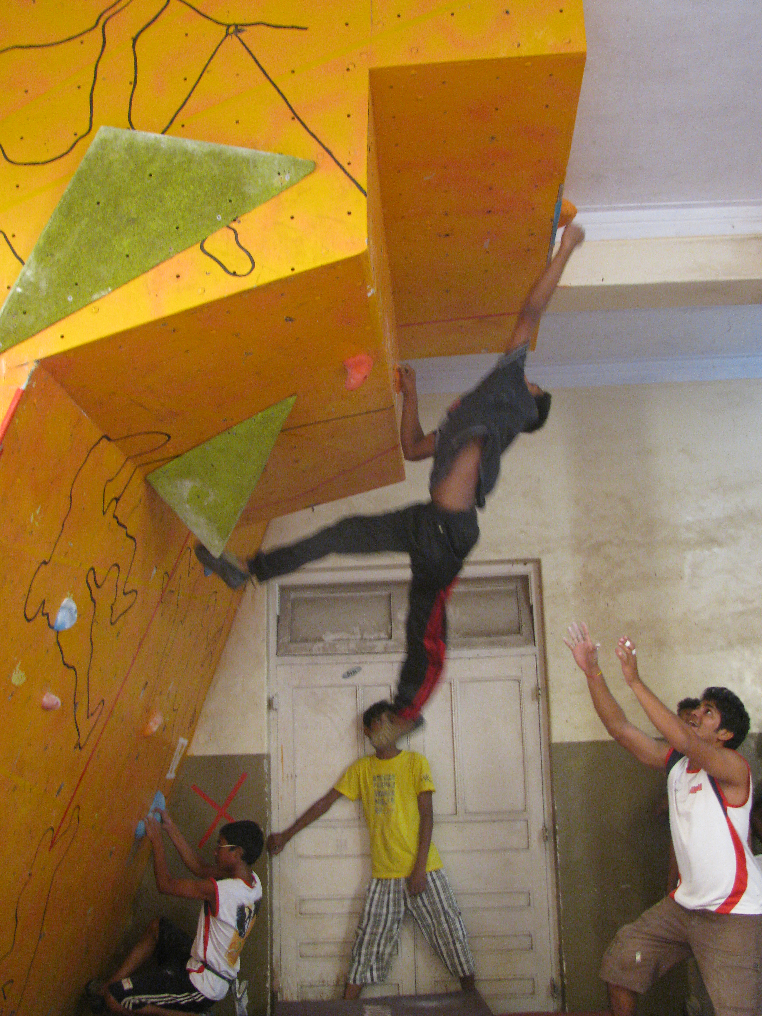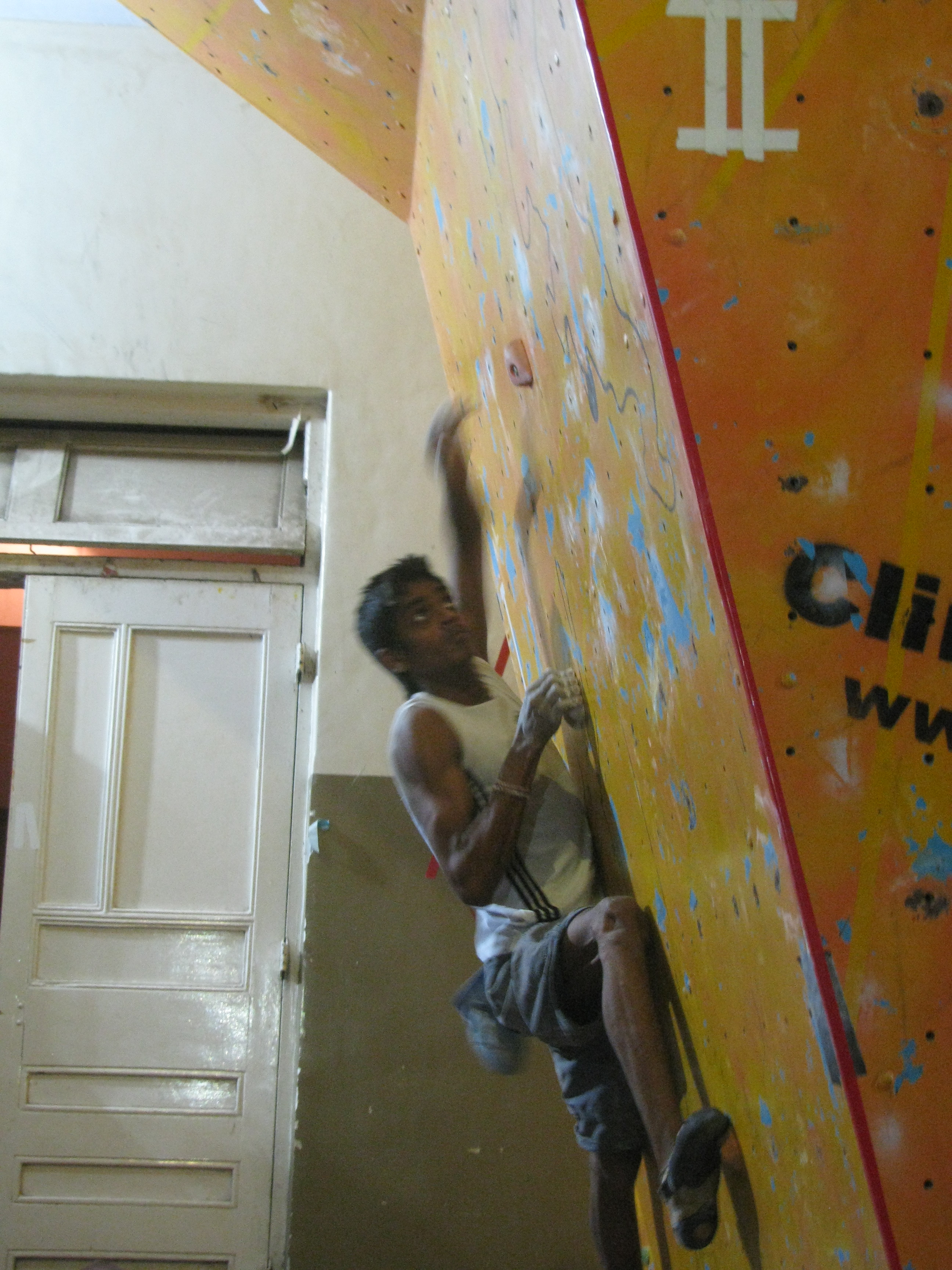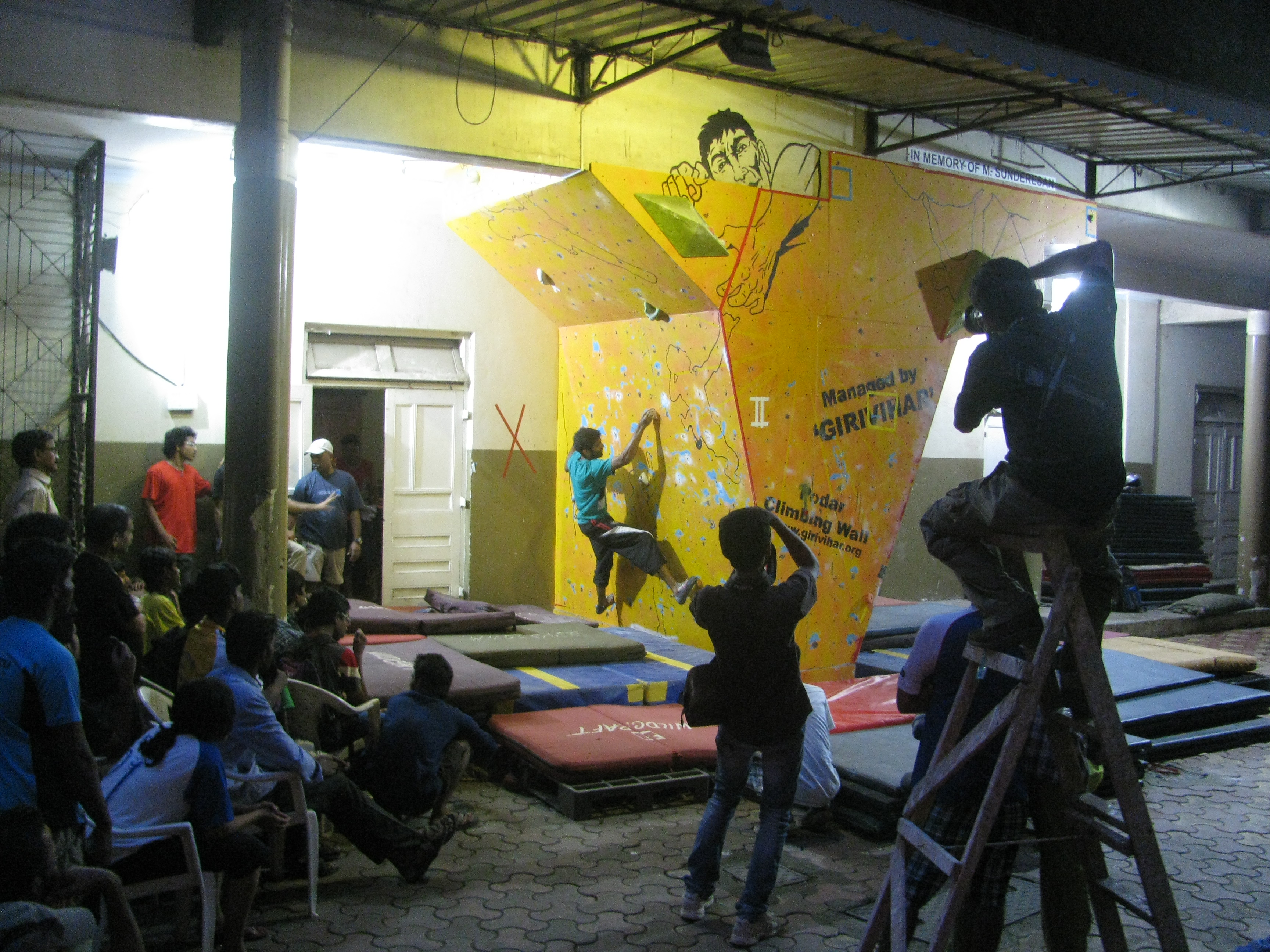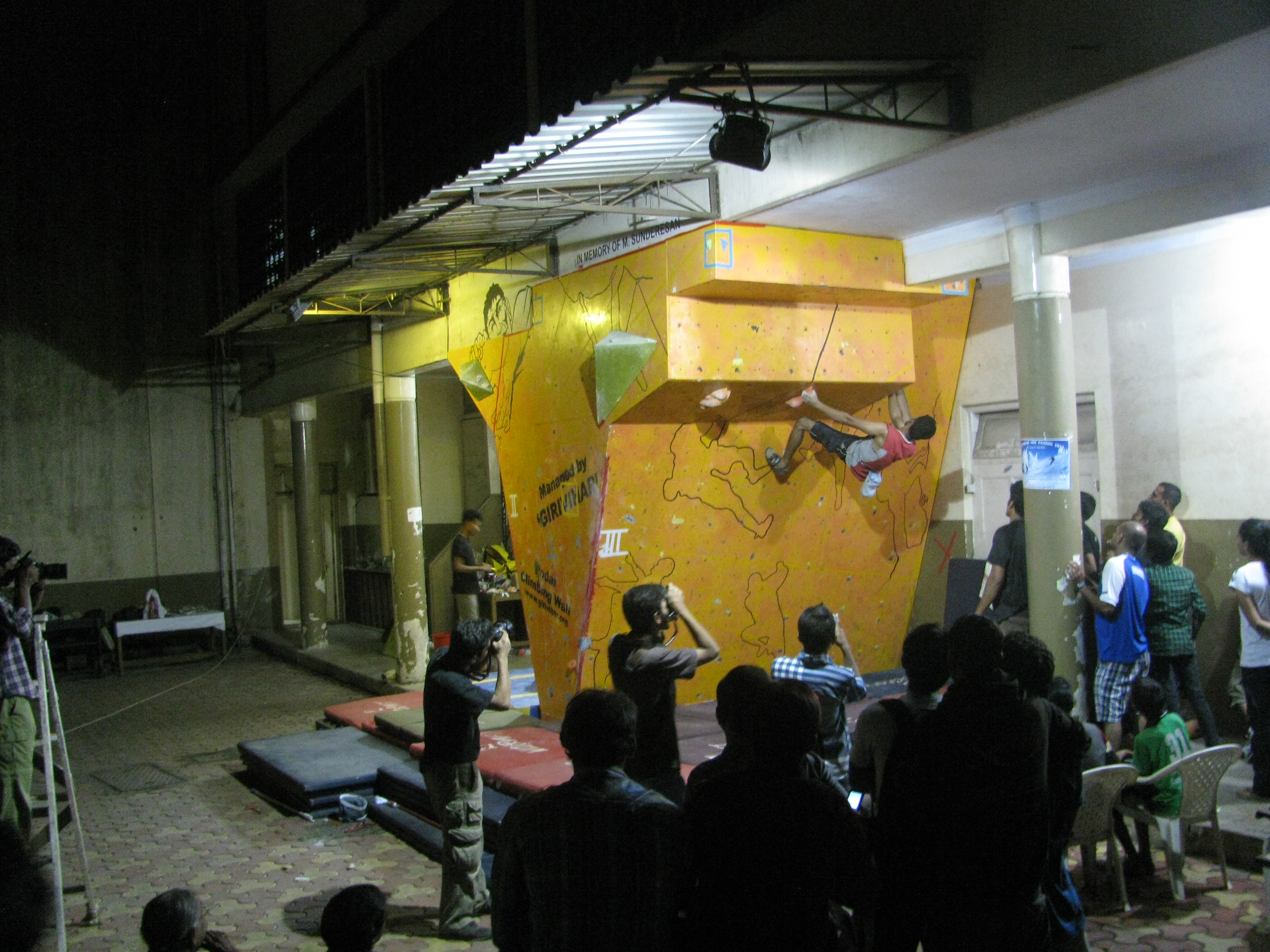 Those days, every weekend was spent climbing. Soon after I registered for the competition, preparations began. I had to do what I could. I was employed at a newspaper. After work, I frequented a friend’s house to train. Abhijit Burman aka Bong had a tiny climbing wall made of a single plywood sheet fitted with artificial holds. This was his old house, before he acquired a new place where he built a wall such that he seemed to be living under it. And that was before he lost his living space to climbers moved in to live under his wall! I trained my way. Young people do a lot of dynamic moves. It featured lunges and leaps. It was the popular climbing style. I was too much a bag of injuries to risk that. Besides I didn’t like dynamic moves. They make for great visual. But outside competition environment and pre-protected sport routes, most climbers wouldn’t do it. Yet that’s what competitions strive to be – great visual. It is activity squeezed into spectacle format. Without it where’s the fun for participant and arena? Not to mention business model, for media and sponsors don’t go where there isn’t spectacle. All sports therefore have their competitive half. We may have run originally as hunters engaged in lengthy pursuit of prey. But there is no competition on the planet more engaging than ascertaining who is the fastest runner around even if you can hold that pace for only less than ten seconds. The stadiums of ancient Greece and the arenas of ancient Rome are thus among the longest standing truths about human behavior. They have since hardened into markets deciding how sport should be. My upcoming zonal competition was a tiny, tiny version of that legacy by market.