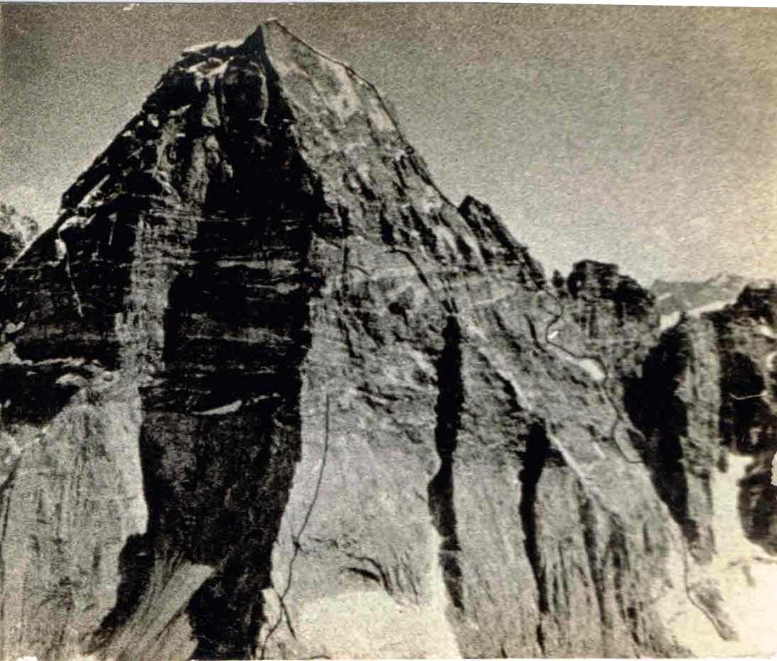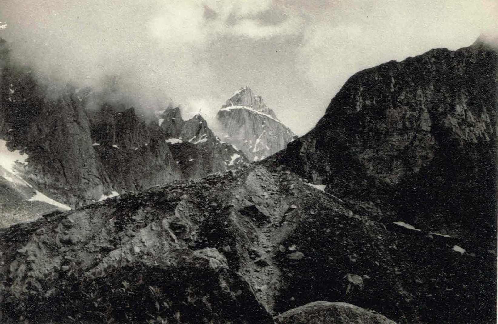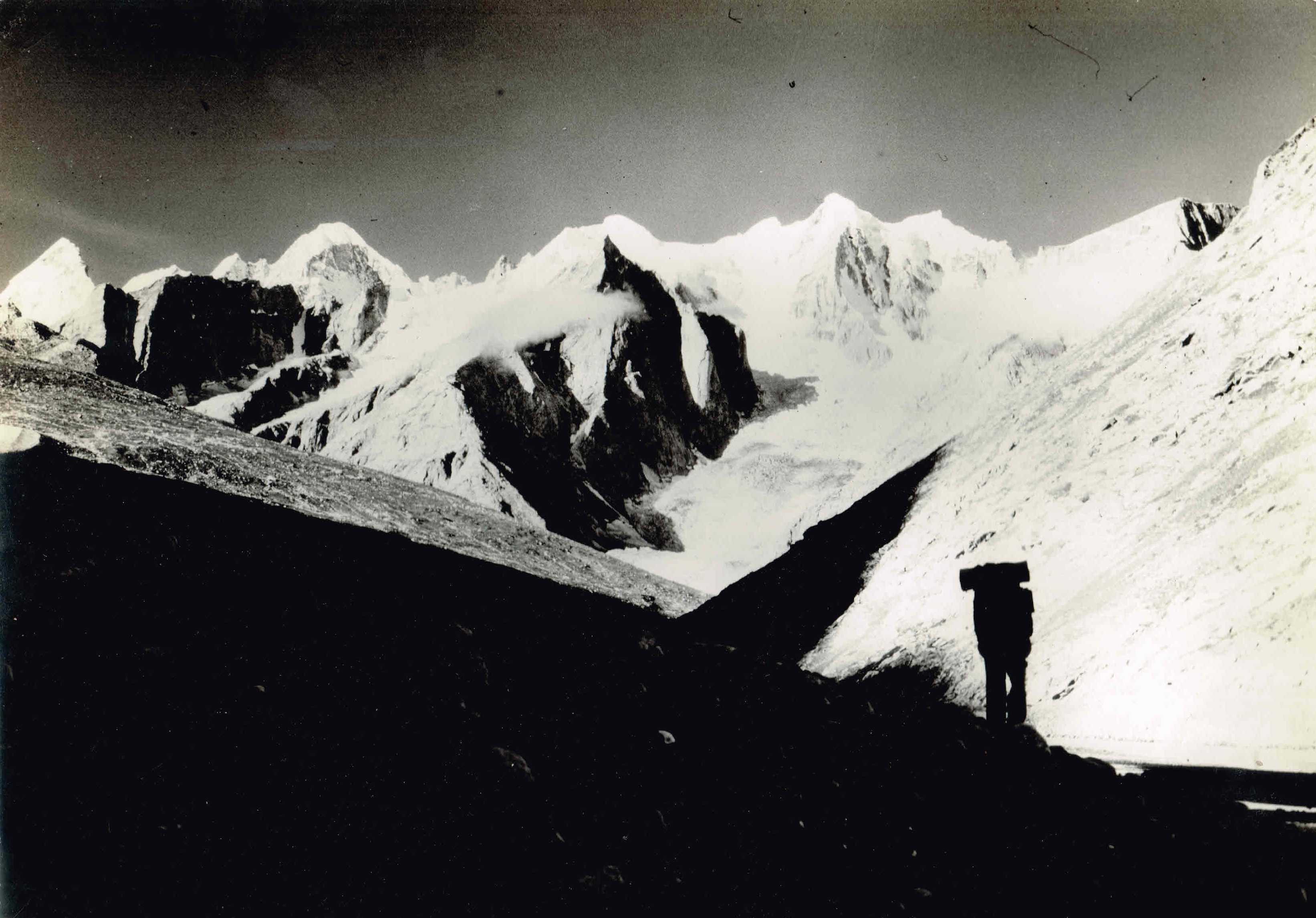 Ali Ratan Tibba, the peak with a band of snow across it in the distance. As seen during the 1978 expedition (Photo: courtesy Ravi Kamath)