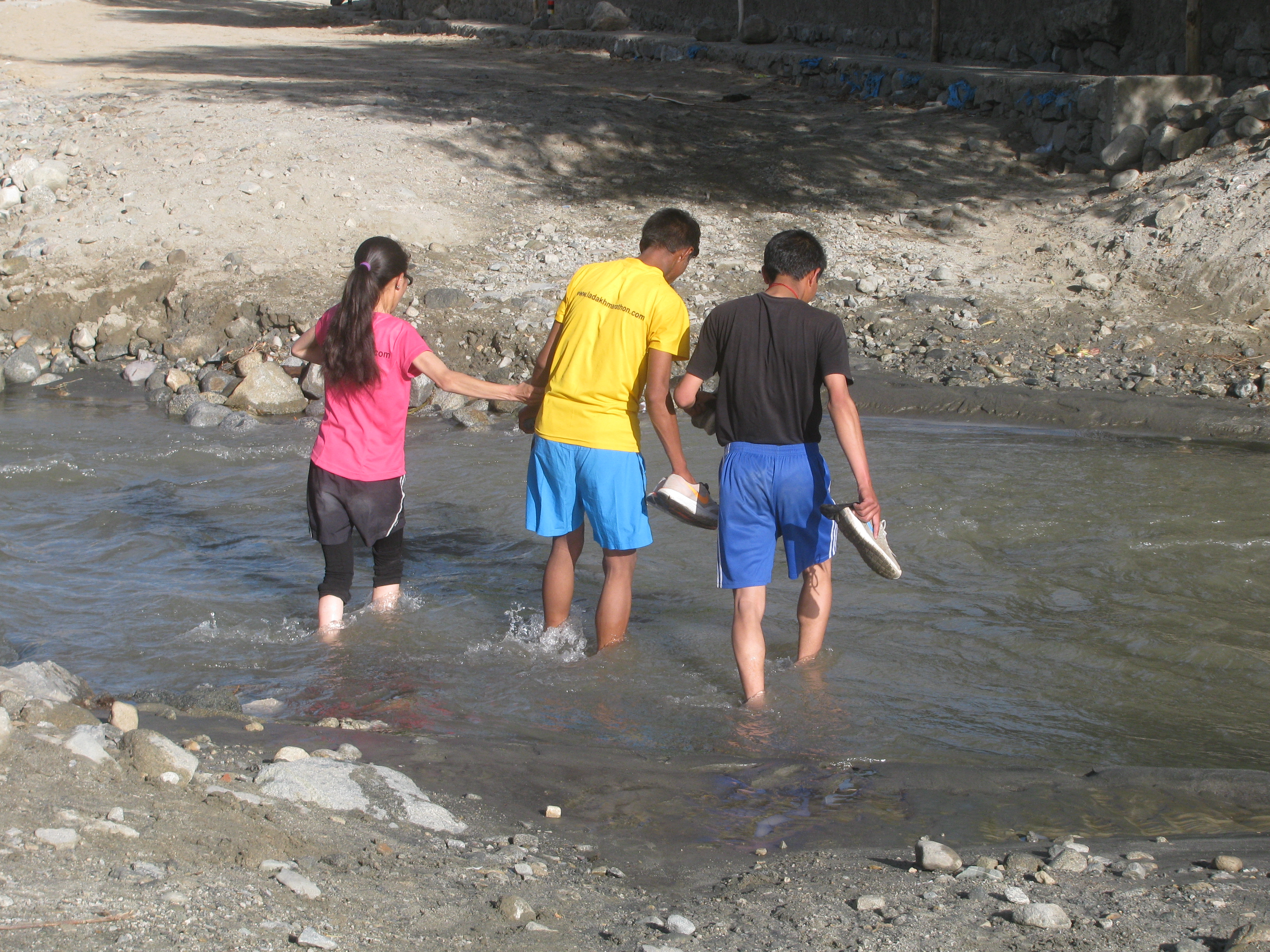 Knowing that if I ran, my story would be sprinting miles ahead of me, I watched the runners’ progress from the comfort of the SUV. Motup who was driving, had taken on the role of a mobile aid station. We had water and oral rehydrants in the boot. With my middle aged, slow jogging pace as reference point, this was a fairly fast 10km-run at 10,000ft. The road was flat and inviting. Among the runners were youngsters who had popped up just that day after hearing of the daily coaching sessions. Everyone who reported was included; all of them ran. Savio’s first couple of days running in Leh had been tough. Then he had found his pace. It was evident that day as he ran along with his wards, the whole 10km. Rain and snowmelt had caused stream levels around Leh to rise. A part of the day’s course was adjacent to a major stream and its flooded banks. At one point a second stream, knee-deep (depending on how tall you are) and filled with the ice cold water of early morning, crossed the runner’s path. All the runners waded through it. Nobody complained. A few laughed. My city self couldn’t help reflecting on that. How many of us will wade happily, uncomplainingly through ice cold water? After the day’s run, the team was treated to a hearty breakfast. This was the daily format. The training was for free.