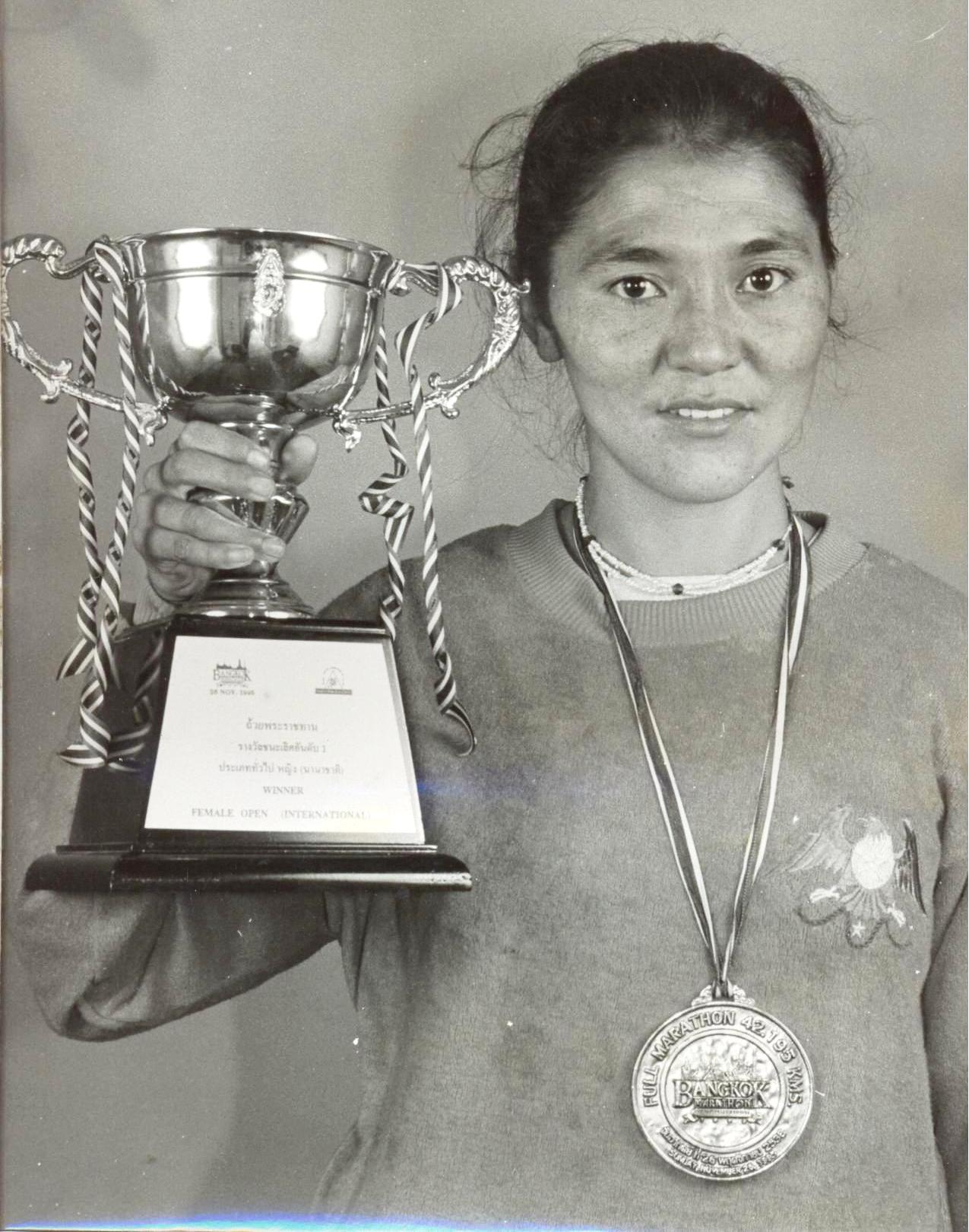 According to Rigzen, nobody pushed her towards the marathon. The shift was something she decided more or less on her own by observing how she performed. A high altitude dwelling-Ladakhi, she seemed to do well in long distance runs requiring endurance. In 1987, she ran the 10,000m race at the senior nationals, winning a silver medal. “ I felt I could do better at still longer distances,’’ she said. In 1989 she ran her first half marathon at the Rath India Open Marathon in Delhi, finishing fourth. In 1990-91 she ran her first full marathon at the same event. P.K. Mahanand, writing in the Economic Times in February 1995, said this of Rigzen’s performance, “ when she took part in the Rath Marathon in 1991, she became the first Indian woman to return a time of under three hours for an athlete on a marathon debut – she clocked 2 hours, 53 minutes.’’ From these beginnings, Rigzen Angmo went on to be among India’s top woman marathon runners, in the same league as Asha Agarwal (the first Indian woman to win an international marathon – the Hong Kong marathon), Sunita Godara and Suman Rawat. The highlights of her career would include podium finishes in international marathons at Bangkok, Kuala Lumpur and Kathmandu. Rigzen believes that she could have done more had it not been for the problem of talent in India restricted by the politics at the country’s sports organizations.