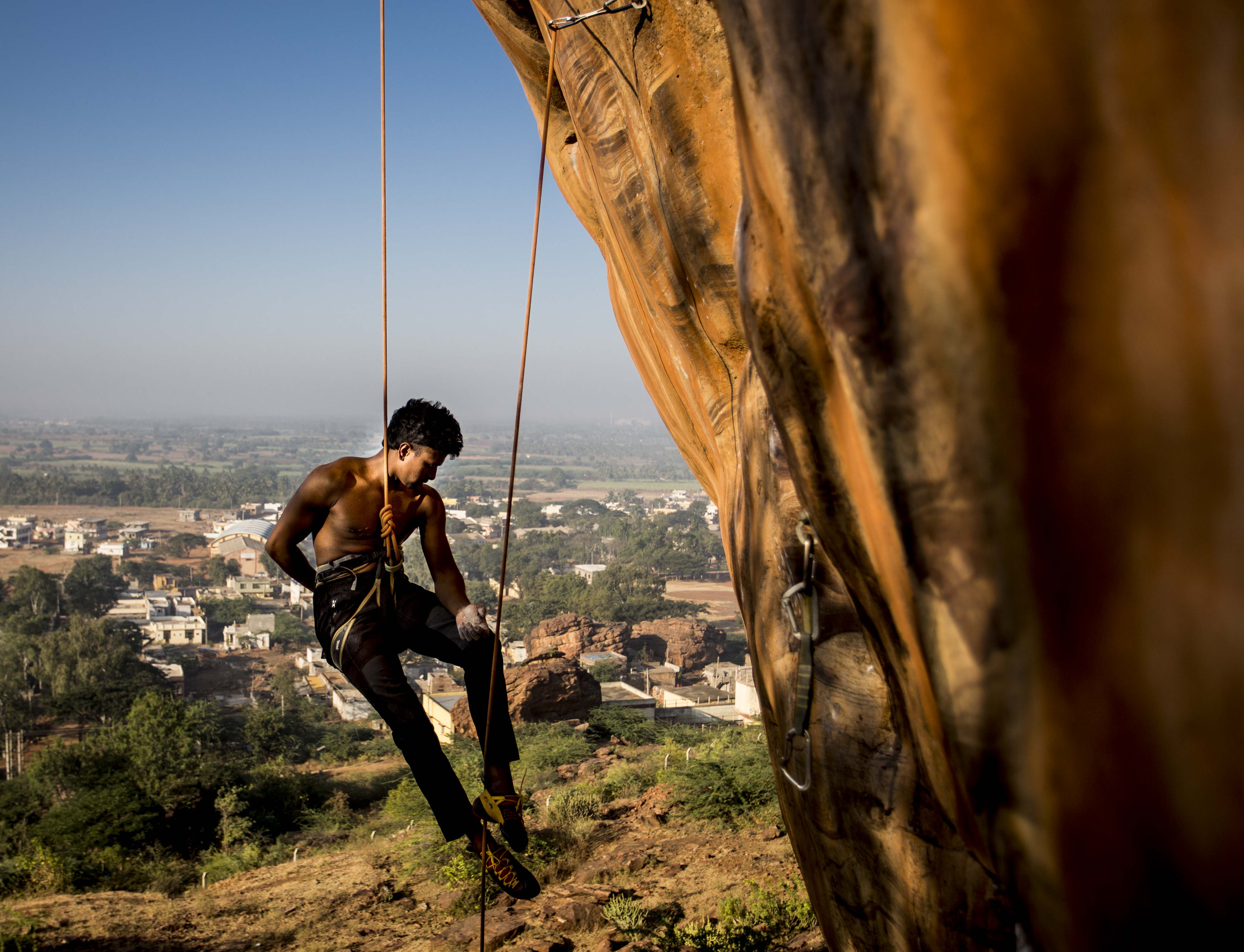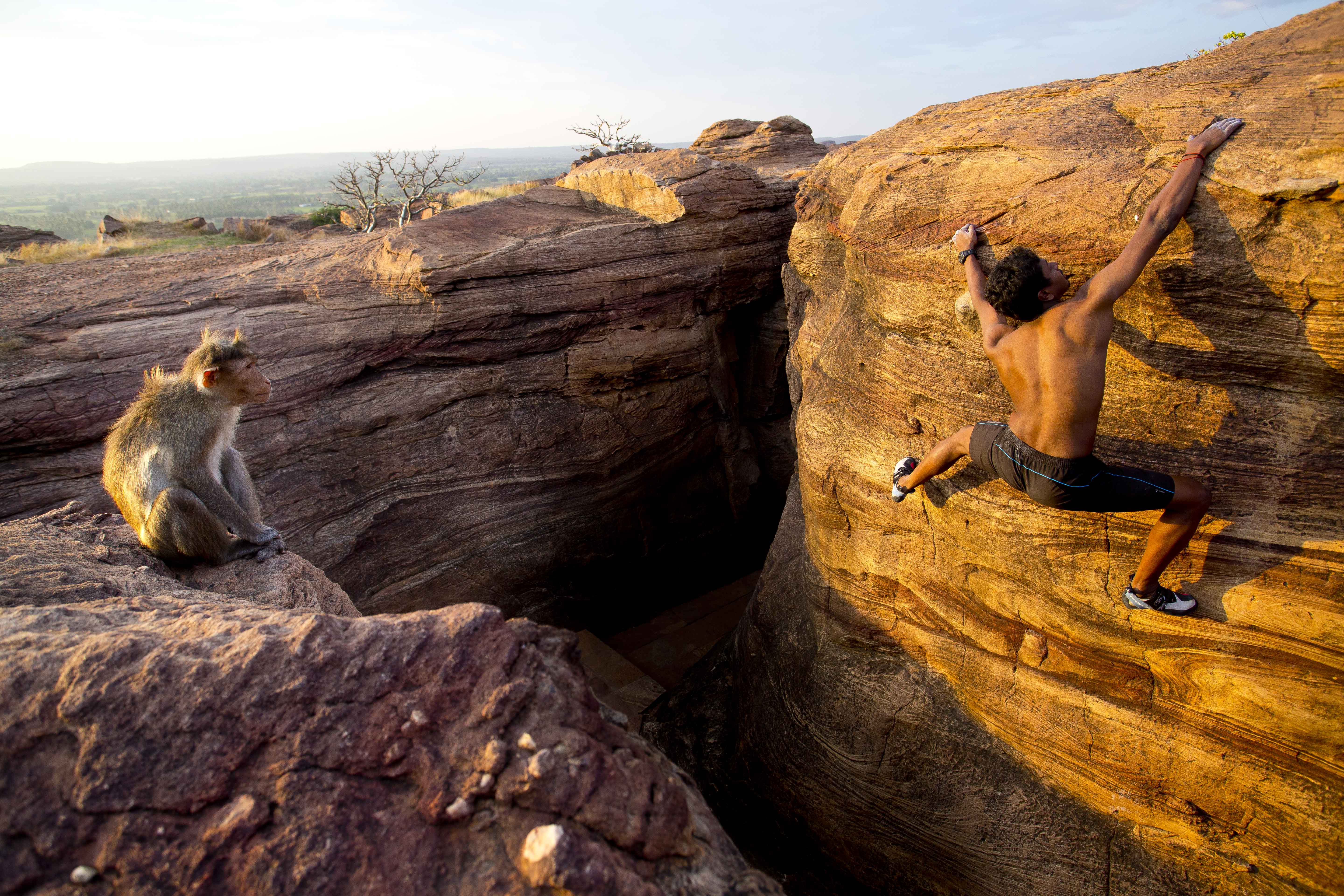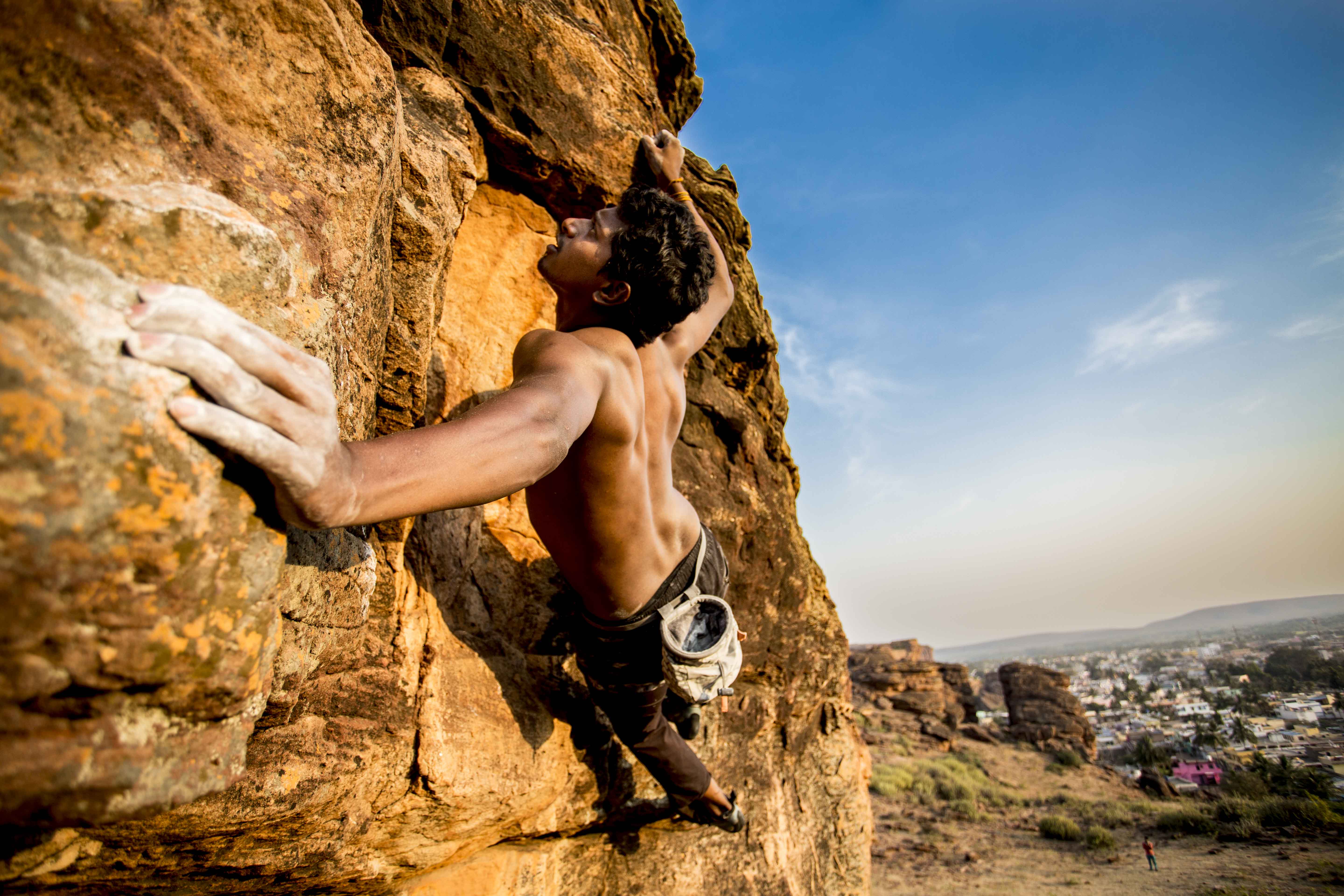 Praveen, climbing in Badami (Photo: Jyothy Karat)