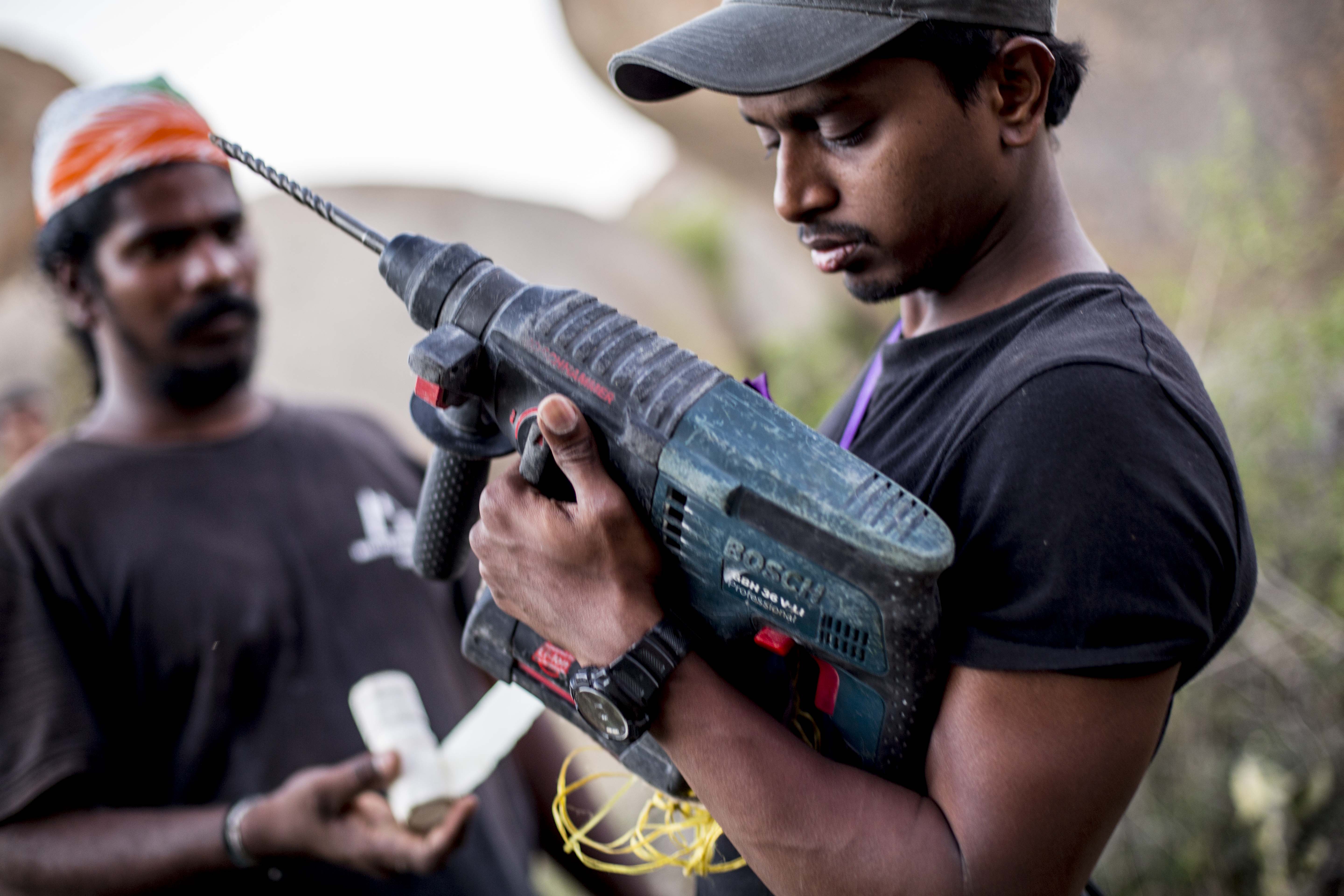 At work, setting up a bolted sport climbing route on natural rock (Photo: Jyothy Karat)