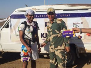 With an officer of the Border Security Force (BSF) at the finish line of the 2017 Run of Kutch (Photo: courtesy Bhupendrasing Rajput)