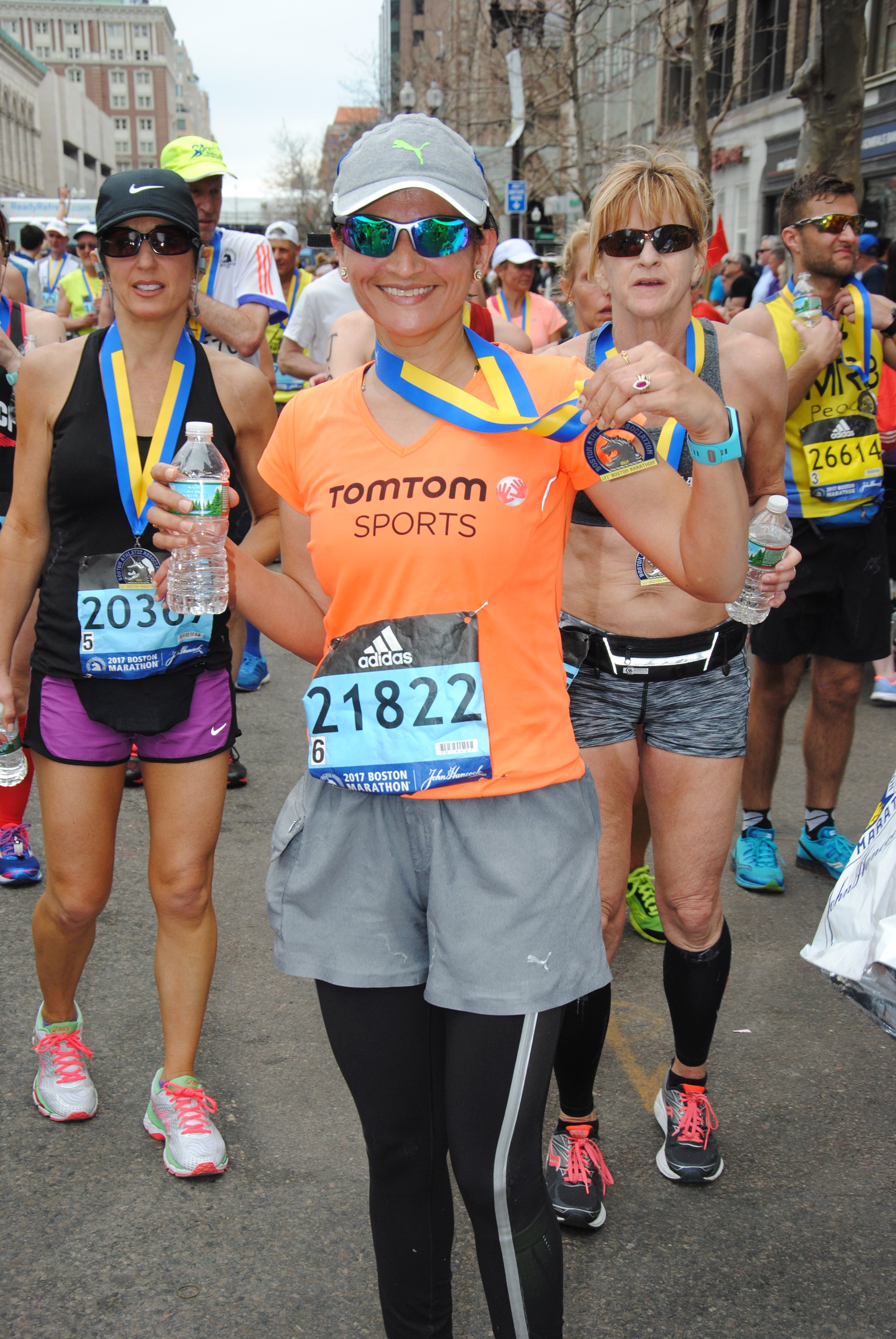 One has to experience Boston to believe it. I have no words to talk about the cheering! Thousands of people, families and kids coming out of their houses and pouring their heart out to cheer the runners; the Wellesley College girls and boys with their kisses near Heartbreak Hill…you don’t even realize when you passed that hill! I had many memorable instances from the race. I heard people cheering me by my name: “ great going Kranti” or “ hey TomTomSports,’’ hundreds of times on the route when I was just flowing with the river of runners. Getting special attention in a race like the Boston Marathon was so empowering!