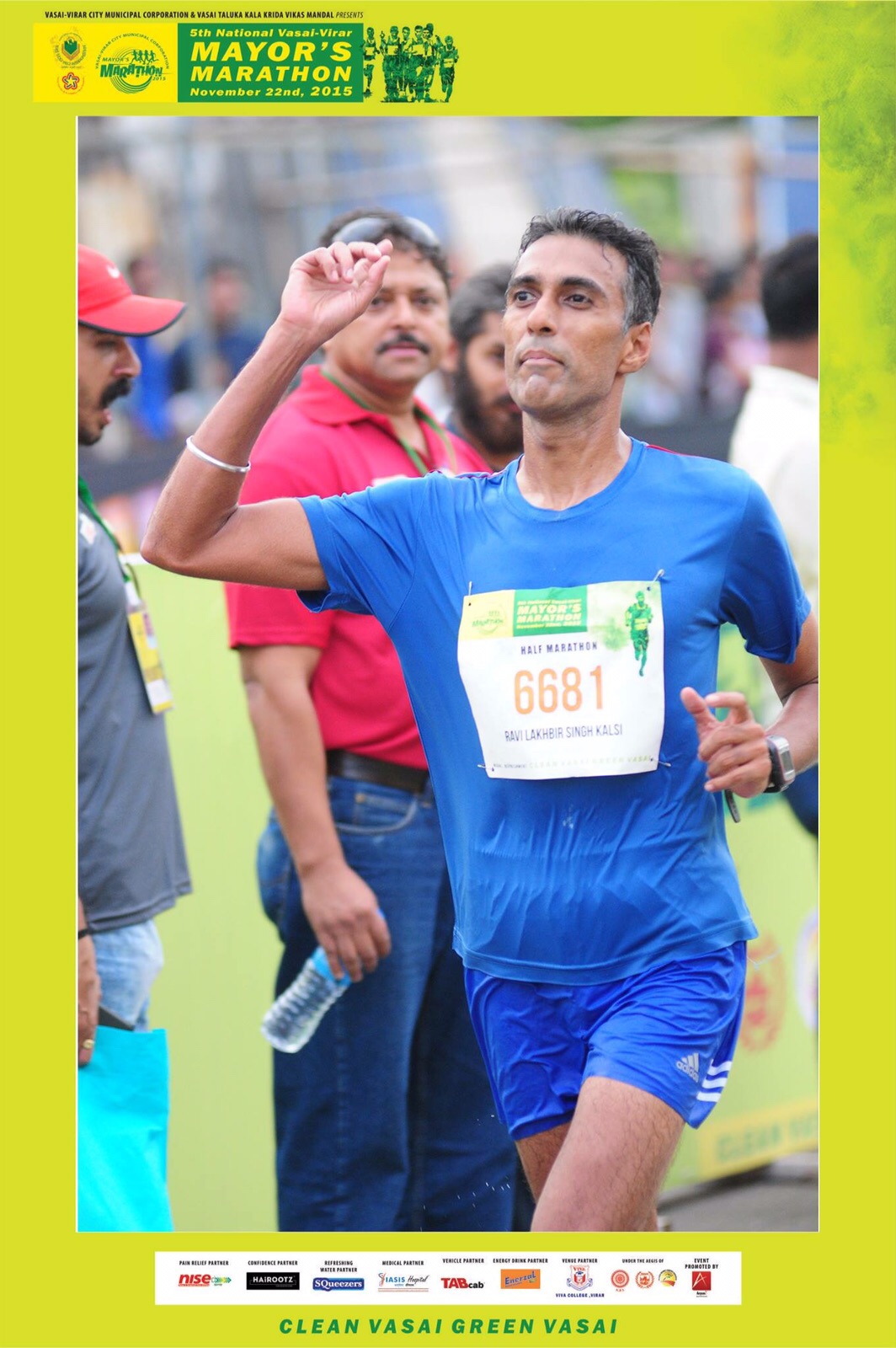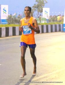 A couple of months later at the 2015 SCMM, the 3:30 barrier fell; he finished the full marathon in 3:23. Why are his improvements in timing, sizable? Why are they not by small increments? “ I don’t know the reason for that but that’s how it has been,’’ Vijay said. Same year, running the half marathon at the Bengaluru Marathon, he got his first podium finish with a timing of 1:29. According to Vijay, he values all distances in running between 5 km to 42 km. He does not foray into races exceeding 42 km. “ Eighty per cent of the time I am in training mode. It is only the balance 20 per cent that I compete,’’ he said. In November 2015, he returned to Kochi for the Spice Coast Marathon. It is a flat track. At the eighth kilometer, Vijay tripped and suspected he had injured himself. However, it seemed manageable. At 21 km, he actually took the lead. “ Suddenly I saw the police escort in front of me,’’ he said. That year, he won the full marathon at Spice Coast. His timing was 3:14. It was both satisfying and a turning point. As the gap with the three hour-barrier reduced, new goals loomed. Then at the 2016 SCMM, a setback occurred. Usually for the asthmatic Vijay, running at sea level is a better experience than running in Bengaluru. Unfortunately a week ahead of SCMM, he got an asthma attack. Its effects continued into race day in Mumbai. He was targeting timing below 3:10. He maintained the required pace till the 26 km-mark. Then he found he couldn’t sustain it. He pulled out. It was his first Did Not Finish (DNF).