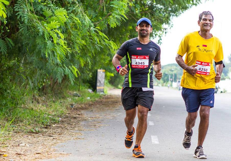 Looking ahead, he was planning to run the 100 km race at Javadhu in August 2017 and the 110 km race at the Malanadu Ultra in Chikkamagaluru. There is also the Vagamon Trail Ultra, which Soles is organizing and hopefully, a shot at Globeracer’s ` Run the Rann’ in February 2018. He had also registered for full marathons at Hyderabad, Bengaluru, Goa and Chennai. Such a schedule naturally brings up the question of injury. Paul has so far been free of any major injury sustained through running, except for a sprain during a half marathon in Coimbatore, which he got over in two months. However, cure for that was not easy. Exercise didn’t work. Disappointment gathered as others ran and he couldn’t. Then he approached a kalari (kalaripayattu is Kerala’s traditional martial art) center in Thrippunithura. Given they deal with martial arts for which one’s body must be kept adequately flexible, kalari centers have long had a local reputation in healing. “ They gave me an oil massage for one hundred rupees and asked me to run the next day and report back. I had no problems thereafter,’’ Paul said, adding, many runners still find his story hard to believe. “ He is not like the rest of us. He is quite a hardy person,’’ Naushad said. Paul is also into yoga. “ At Soles, we have a runner and yoga teacher in Rajappan. Once a week he takes classes for us. I do yoga thrice a week,’’ Paul said. He follows no special diet but makes sure to stretch after every run. “ I don’t remember when I last saw the doctor,’’ he said encapsulating what running had done for him. According to Paul, he, Rajappan and Mathew Mapram (based in the US but reaching Kerala every year to run with his friends) are a prominent trio of senior citizens into running at Soles. Paul’s personal best in the full marathon was 4:56, set at the 2016 Run of Raramuri Tribe (TROT) in Bengaluru. Along the way, a few podium finishes have been there – there was a second place in his age category at a half marathon in Mysore; there was a third in a 10 km-race in Mangaluru. But he doesn’t care about winning. Podium is not why he came into running. He likes to run; period.