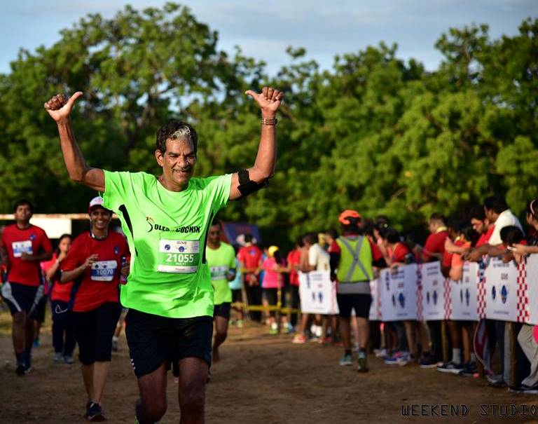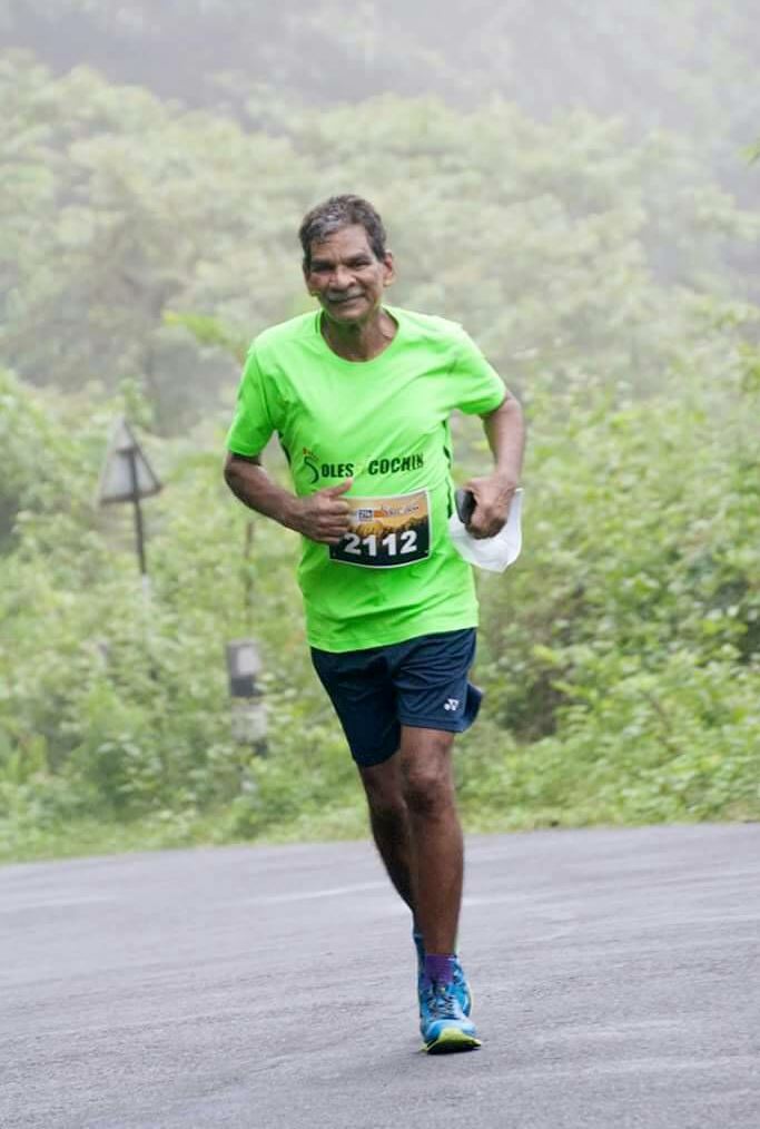 In December 2014, on turning 60 years of age, Paul retired from service. In July 2015, he formally joined Soles of Cochin where he would subsequently become popular as “ Paulettan,’’ `ettan’ being a quickly said version of the Malayalam word `chettan’ meaning elder brother. Upon joining Soles, Paul’s running became more systematic and regular. “ I started running at least 50 km every week,’’ he said. Paul described a typical week with Soles. Sunday would be a run of 8-10 km, from the Kadavanthara stadium to the Kaloor stadium and back. On Tuesday, they would run 10-12 km from Edappally to the Cochin University of Science & Technology (CUSAT) via Thrikkakkara. Thursday featured hill running; the runners would proceed from CUSAT to the HMT factory and onward to the local medical college before returning to CUSAT. “ That would be around 10-12 km,’’ he said. On Saturday, the runners would start at Edappally and proceed sometimes to Thrippunithura, logging a distance of 21-25 km. “ With all this, I now run 60-70 km every week,’’ Paul said. According to Naushad, Paul was initially reluctant to join a runners’ group. He shied away claiming he didn’t run much. Invited to come along for a Sunday run, he cited his Sunday appointment with the church for excuse. Then he turned up for a run but wasn’t seen thereafter. “ Once he returned, he has been a regular at the group’s runs. Not just that, Paul is a very good organizer. There was a run we planned at Moolamattom and Paul took care of it completely by himself. Almost 100 people enrolled for that run, of which, nearly 80 turned up to run,’’ Naushad said.