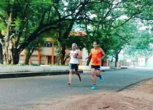 With Ramesh Kanjilimadhom; from a regular Soles of Cochin run near CUSAT in Kochi (Photo: courtesy Paul P.I)