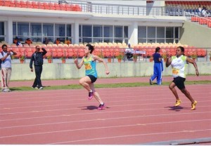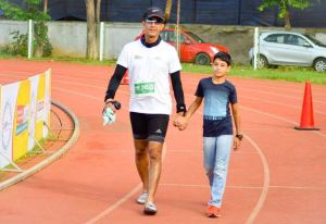 Latter half of the 2017 24 hour- stadium run in Mumbai; feet covered in blisters, younger son Sahaj for company (Photo: courtesy Girish Bindra)