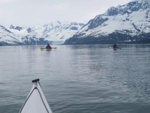 Prince William Sound, on the south-central coast of Alaska, is ringed on three sides by glaciated peaks. It’s protected from the open Pacific by barrier islands that enclose intricate waterways, fingering fjords, bays, and coves along with reciprocal peninsulas and scattered islands. The land is steep temperate rainforest—massive conifers and blanketing moss. The water is filled with a remarkable fecundity of marine life. Whales, orcas, seals, and sea lions are regular sightings, especially for sea kayakers who accept some wetness for the extraordinary intimacy that mode of travel allows.