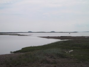 Seen from above, the ragged northern edge of the continent is lacy terrain, thousands of square miles of boggy water-pocked tundra. It’s impossible to know if there’s more land or more water. In a kayak on the river, the flat of the land turns the attention to the sky which seems bigger than it ought to be, as if someone has pulled the horizon down several degrees, as if you are viewing it through a fish-eye lens. You feel like a drop of water about to fall off the top of the world.