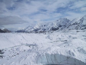 On the way from Base Camp to Camp 1. The area around Zero Point can be seen to the center and right of center of the picture (Photo: courtesy Araib Hasan)