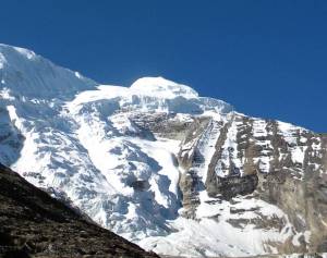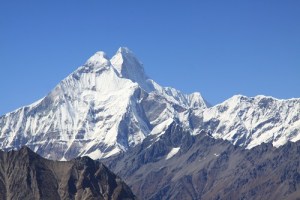 Nanda Devi as seen from BrijGanj Dhura (15,308 feet), the pass between Ralam and Milam valleys. To the left is Nanda Devi East (24,390 feet) and to its immediate right is Nanda Devi Main / West (25,643 feet). This photo was taken in mid-October 2011 (Photo: Punit Mehta)