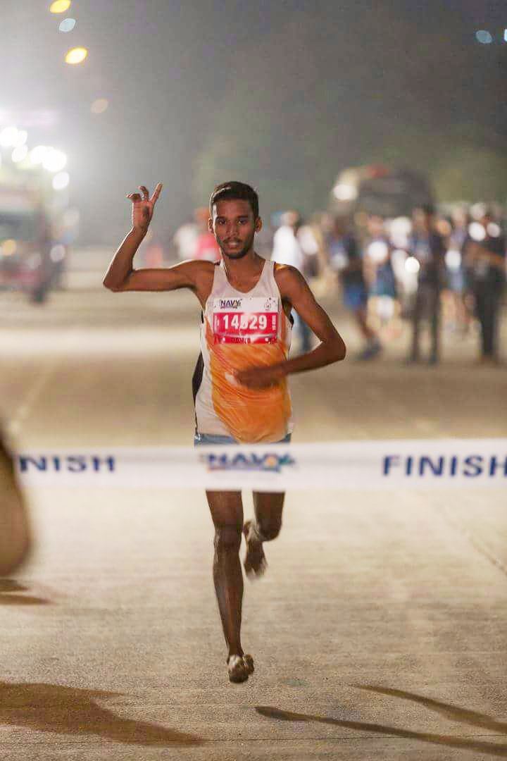 Another runner Phillip helped was Kamlya Bhagat, whose background is similar to that of Dnyaneshwar. He lives some distance away from Panvel, a township south east of Mumbai (Vikramgad Khand is north east of Mumbai). Older than Dnyaneshwar but a fellow race horse counting on running for a fair amount of his income, Kamlya won the half marathon at SCMM (now TMM) in his age category, in 2016 and 2017. Incredibly, Dnyaneshwar missed registering for the 2018 TMM. He had entrusted the task with someone; it apparently got overlooked. His personal best in the half marathon was 1:08 clocked at the 2016 Vasai Virar Mayors Marathon (VVMM). In early 2017, Dnyaneshwar became the recipient of the Runner of the Year award given by Mumbai Road Runners (MRR), one of the biggest running groups in the city. Srivatsan Mambakkam, senior runner from Navi Mumbai, was on the jury that selected winners of the 2016 awards. “ In Dynaneshwar we had a runner who clocked 1:08. I think the attributes we appreciated in him were – he was young; fast, consistent in performance and returning good timings at events featuring decent competition. VVMM for example, is quite competitive,’’ Srivatsan said. Dnyaneshwar’s streak of good timings has continued. At the IDBI Federal Life Insurance Mumbai Half Marathon of 2017, he finished first in the half marathon with a timing of 1:09. In November 2017, he romped home first in the Western Naval Command (WNC) Navy Half Marathon, clocking 1:09:37.