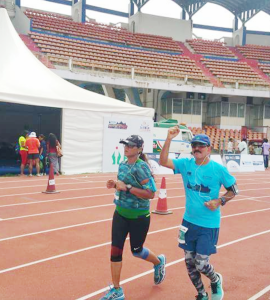 Meenal and Commodore Joginder Chandna, during a 36 hour-stadium run in Bengaluru (Photo: courtesy Meenal)