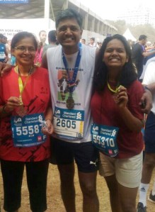 With wife and daughter after SCMM, typically a family outing. For Sundaresan, this was his sixth marathon from the 50 (Photo: courtesy Sundaresan)