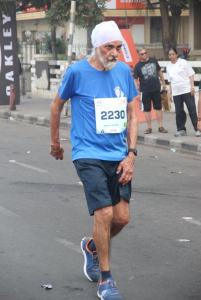 Faced with a plantar fasciitis problem Idris could train for only 45 days. Nevertheless, the run went off well and he ended up winner in his age category with timing of 1:24:37.