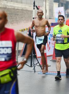 At the Mumbai Marathon, he managed good pace until the 12th kilometer. After that, his pace started to drop. He also had difficulty moving his right arm due to shoulder ache. “After the Vasai-Virar run, my training was quite inadequate. I had not done a single run of over 15 kilometers. Had I done even one training run of 30 kilometers I would have been able to do better here,” he said.