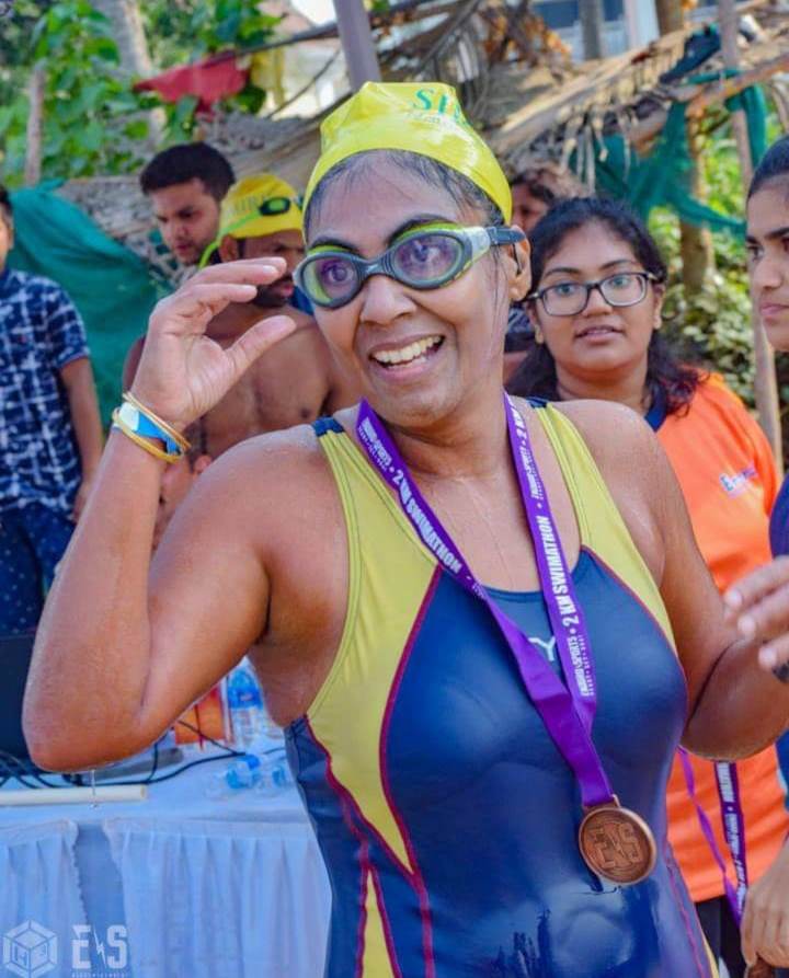 In 2018, she enrolled for the open water swim called Swimathon, organized by Enduro Sports. She participated in the two kilometers discipline. In 2019, she enrolled for five kilometers and two kilometers. In the five kilometers swim, she finished on the podium – third position in the age category of 40 years plus for women. This is her journey; in her words: