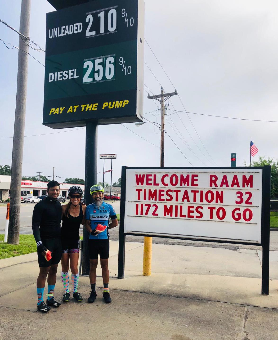 From RAAM 2019; halting at a time station en route, to check-in. At right is Dr Lam Do, the team leader of SuperMarrow (Photo: courtesy Arham Shaikh)