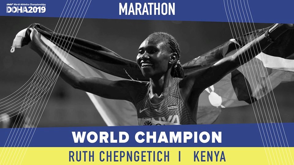 Kenya’s Ruth Chepngetich struck gold in the women’s marathon at the 2019 IAAF World Athletics Championships which got underway in Doha on September 27.