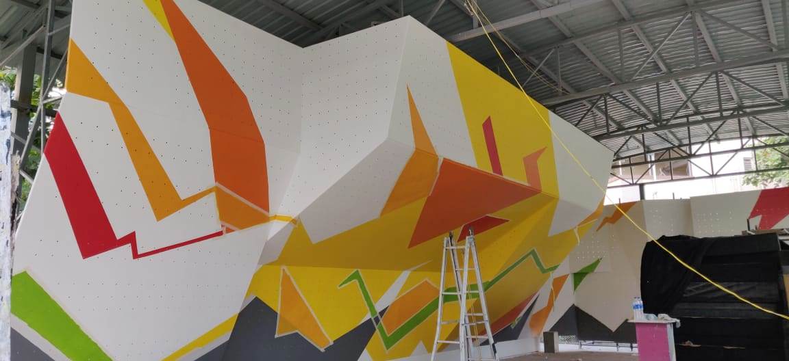 In tune with the growth of sport climbing in the Mumbai region, Nerul in Navi Mumbai is set to get its first artificial climbing wall accessible to the public. At a park, roughly five minutes-walk from the Nerul railway station, the municipal authorities have installed infrastructure capable of hosting an indoor climbing facility. A large protected shed has been created with space adequate for at least three walls. At the time of writing, two walls had been installed and painting work was underway on the walls; the climbing holds were yet to be fixed. The main wall is an imported climbing wall fabricated by the French company, Enterprise. It was shipped into the country for use in the 2016 IFSC World Cup in bouldering that was held in Vashi, Navi Mumbai. Following that edition of the event, at the 2017 IFSC World Cup held in Vashi, it was used as a warm-up wall.