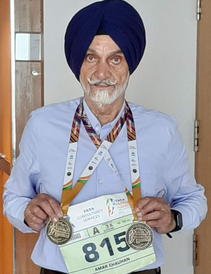 Septuagenarian Amar Chauhan is a regular podium finisher in his age category at running events across India, including the Tata Mumbai Marathon.