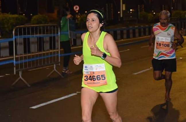At Mumbai, she hoped to finish in around 1:38 hours, her personal best in the half marathon. She finished tad outside that mark in 1:39:26 and secured second position in her age group of 40-44 years. Her run progressed well but at the seventh kilometer she lost the cap of her water bottle and got distracted managing a bottle with water splashing out of it.