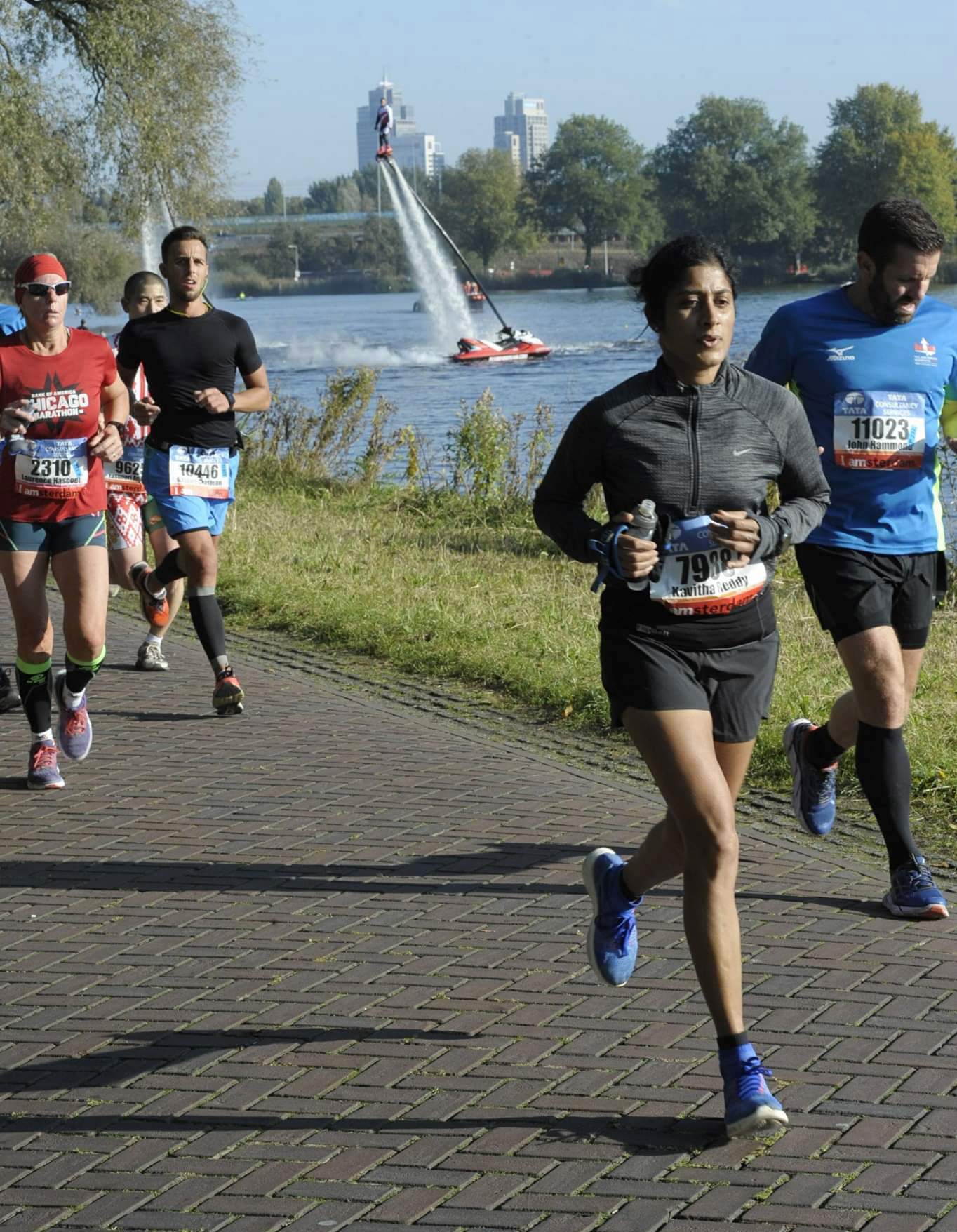 In April 2019, Kavitha ran the London Marathon completing it in 3:23 hours, a further improvement in timing. Roughly six months later, in October, it was time for the Chicago Marathon. She had trained well under Atul Godbole for the race. Her target was 3:15-3:17 hours. During the Chicago Marathon, GPS devices do not function well because the route passes through the vicinity of tall buildings. Kavitha trusted her intuition and internal clock. She had prepared for it. In fact, before leaving for Chicago, her coach had made her run a half marathon in Pune without looking at her watch. In Chicago, till the 27th kilometer, she ran fast and in the process set a new personal record for the half marathon distance, covering that segment of the course in 1:36 hours. “ I felt strong even after I crossed the 35 km mark. I continued at the same pace. The last 600 meters were my best,’’ she said. She completed the run in 3:14 hours, yet another improvement to her PB.