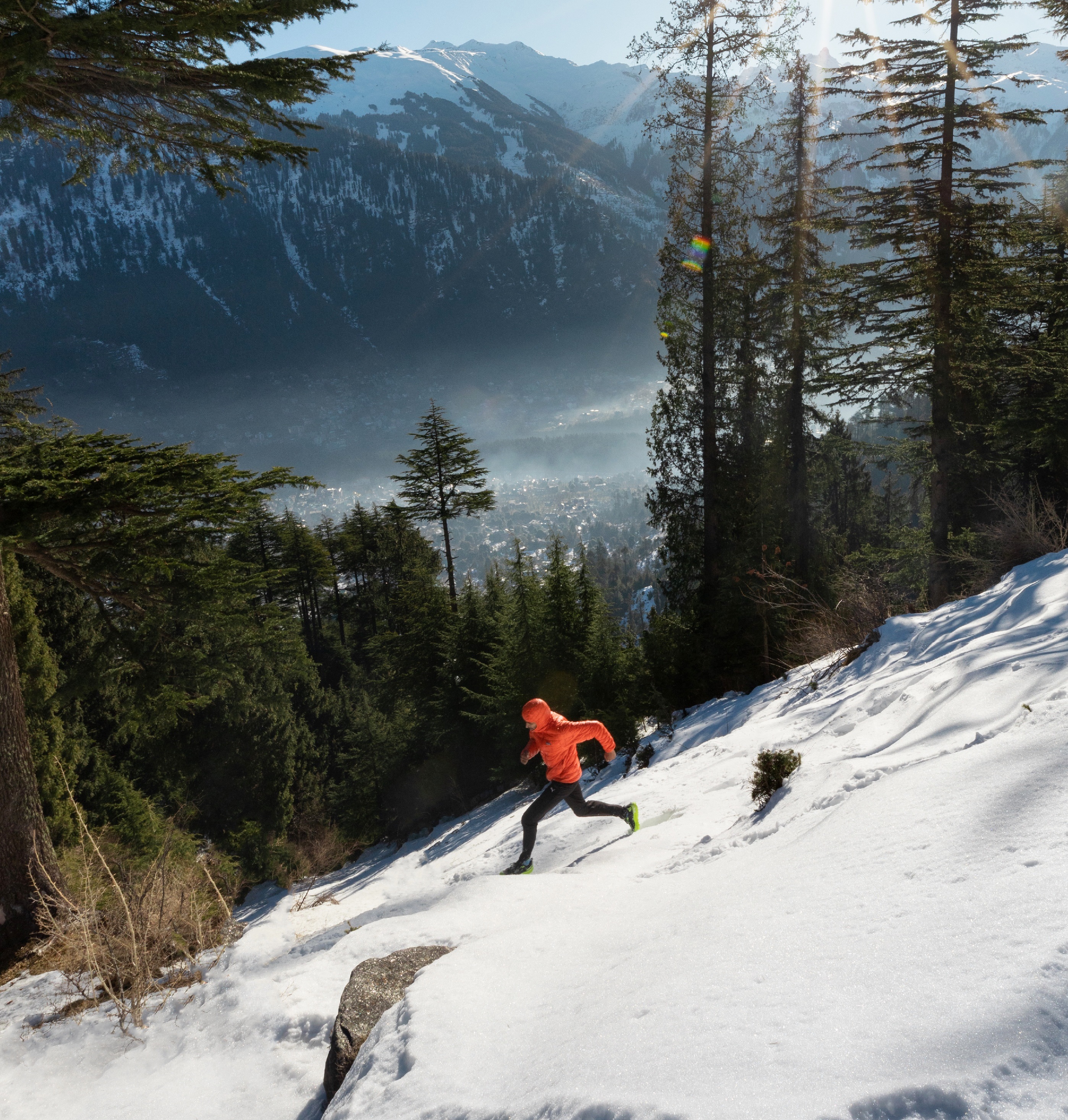 Kieren D’Souza; from a run in winter in Manali. The town can be seen in the distance (Photo: Nitish Waila / provided to this blog by Kieren)
