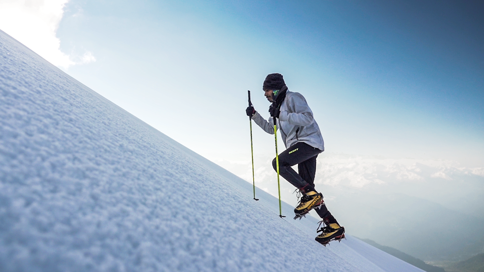 Kieren D’Souza; from the run up Friendship Peak. He is seen here a few hundred meters below the summit (Photo: 4Play / provided to this blog by Kieren)