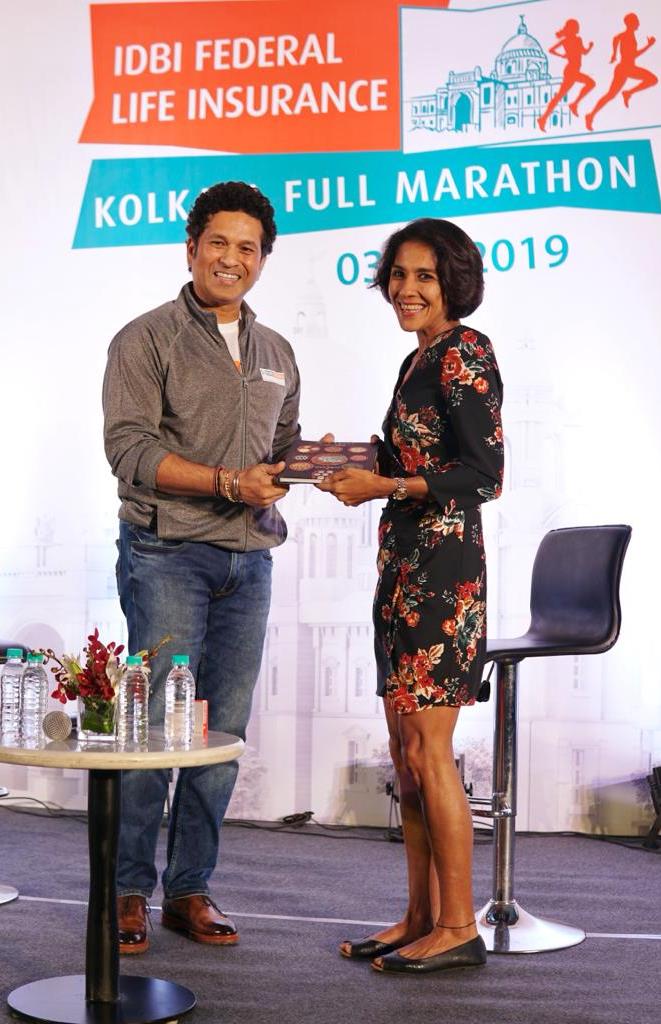 With Sachin Tendulkar at the 2019 IDBI Federal Life Insurance Kolkata Marathon (Photo: courtesy Anjali)