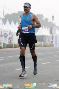 He started the run at 4.30AM running along the earlier mentioned flat 10 kilometer-loop. After the first loop, he was paced by runners Krishna Sirothia and Kavitha Reddy. “ Although tired, I was happy I did not have any aches and was able to gather pace through the last miles to finish within my intended target,” he said. He finished the marathon in 3:47:43.
