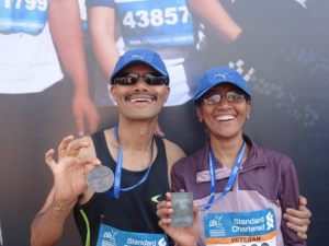 Doctors Bindu and Vivek Nair have been dentists in Thiruvananthapuram (Trivandrum) for a long time. Bindu got into running about two years ago thanks to Trivandrum Runners Club (TRaCs). A resident of Vazhuthacaud in the city, her first run was approximately five kilometers long, from Kowdiar to LMS Junction and back. Three months later, she did a run of ten kilometers. Since then, Bindu has been running four days a week; she leaves home at 4.30AM and returns by around 5.30AM having covered the distance from home to Kowdiar to the local museum, botanical garden and zoo (a popular haunt for those into morning walks and jogs) and back.