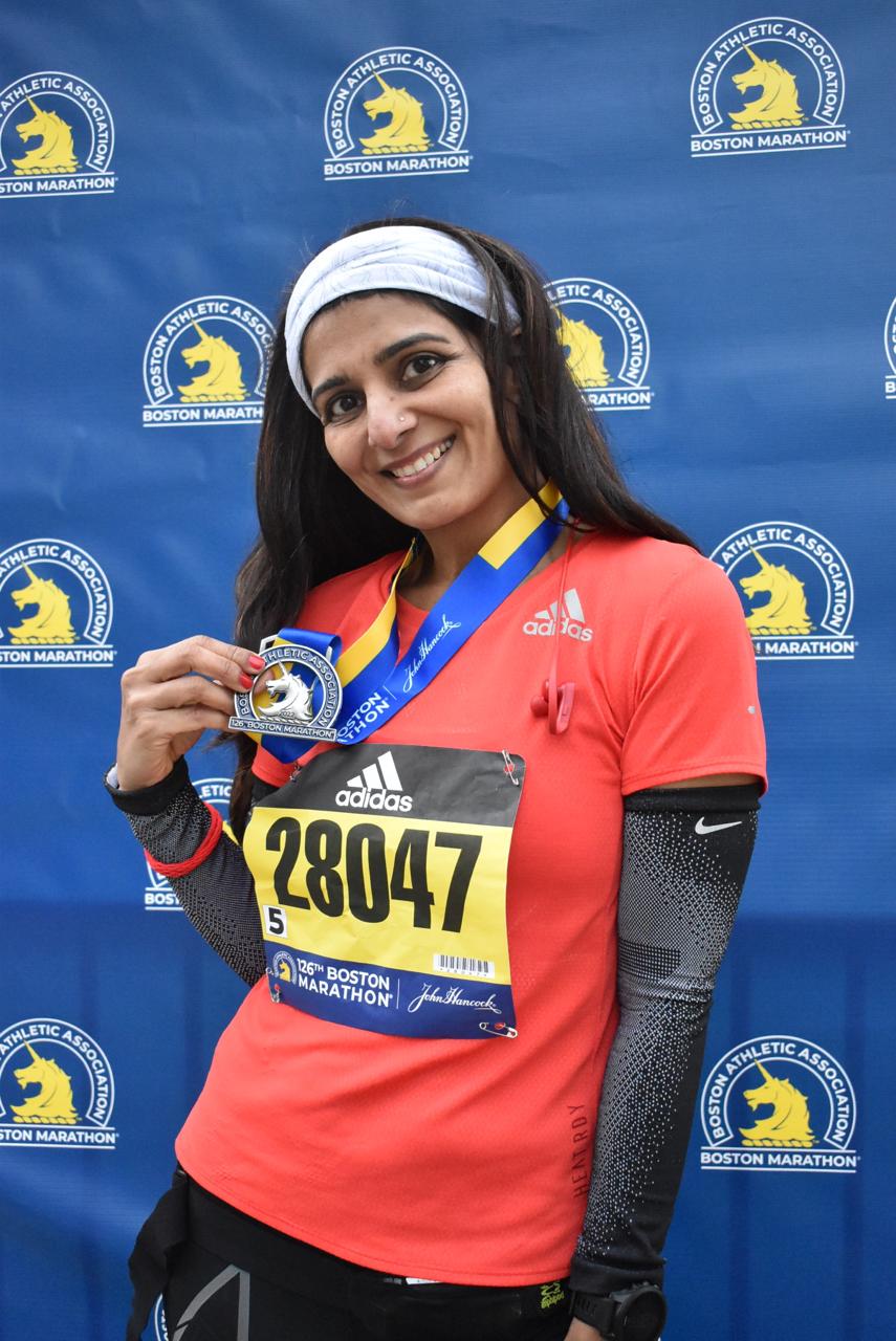 A recreational runner for the past over 12 years, Binita put in just about two months of training for the Boston Marathon. “ At Boston Marathon, I was in the last wave. For the first 10 kilometres I had to weave through the crowds. At the end of the race my GPS device showed a distance of 44 kilometres,” she said. Once the crowd of runners thinned, she was able to pick up pace and run well for the rest of the distance.
