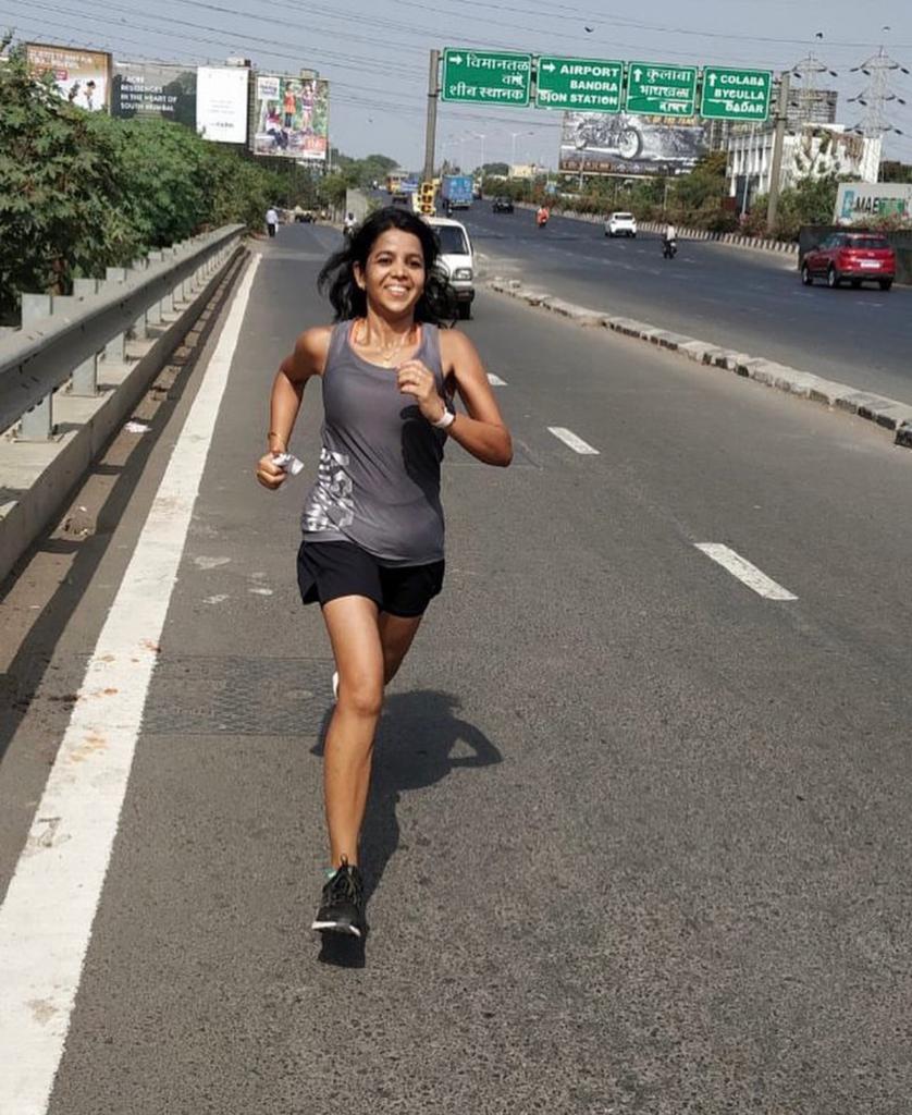 Gitanjali’s journey in running commenced in 2016 when she signed up for Hiranandani Thane Half Marathon. The run is held annually at the Hiranandani residential colony where Gitanjali resides. “ A couple of my friends would go for this run every year. I decided to sign up for the 2016 edition, choosing the 10 km distance. I had no clue about running or its attire,” she said. Gitanjali finished the run in 1:19:11. At the end of the run she realized that she finished easily without any strain despite the absence of any training while many others were “ huffing and puffing at the finish line”. Two months later, she signed up for another 10 km race, finished within one hour and landed on the podium.