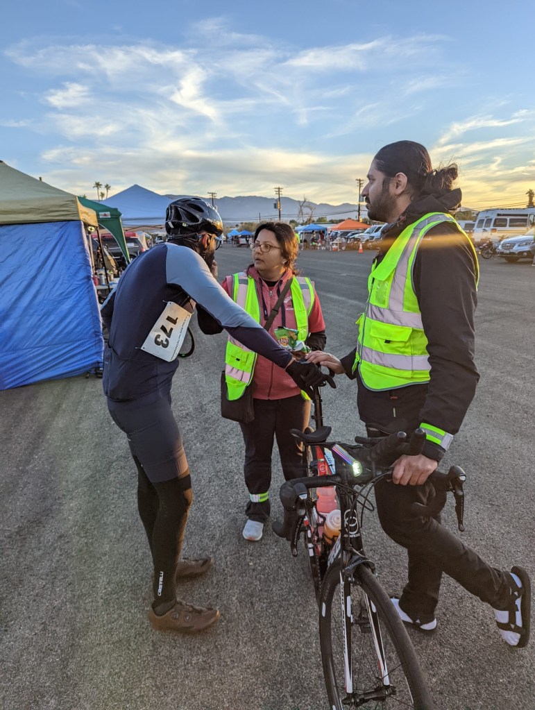 The event was held on a loop of 29 kilometres. It had one stop sign and no traffic signals. Notwithstanding the lone stop sign, cyclists participating in the WTTC were given priority by the authorities so that they could go about accumulating loops. In fact, the whole town appeared supportive of the event. Kabir recalled traffic making room for the cyclists and accommodating them on the road. The weather was helpful; prevailing temperatures were not high. And unlike in RAAM, where the scale of the course is huge and cyclists are often separated from each other by considerable distance, in Borrego Springs, the loop of 29 kilometres kept the sense of community compact and permitted social interaction among the participating cyclists.