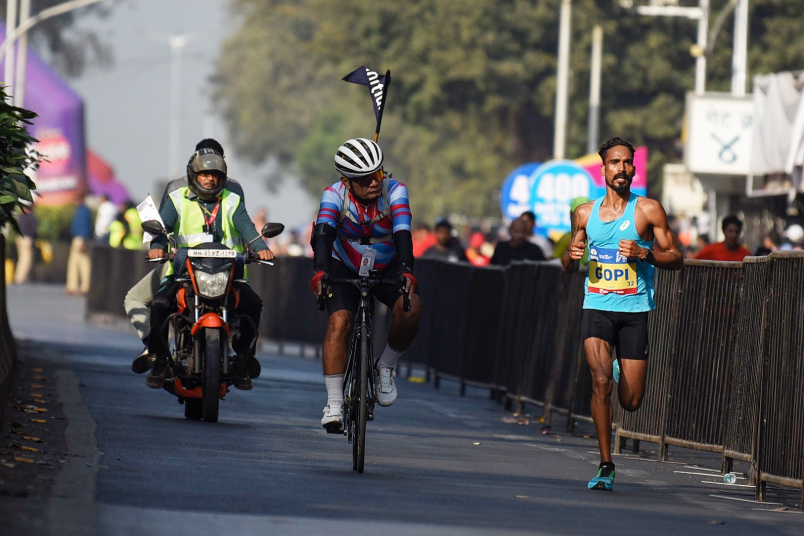 On January 15, 2023, at Flora Fountain in Mumbai, the camera in my phone struggled to capture the elite marathon runners passing by. That was when I noticed a man with a good camera nearby, who too was clicking pictures. Upon my asking he said he was an amateur photographer. I enquired if he would be willing to share a photo or two with this blog. Saurabh Bhattacharyaa agreed. By day’s end, thanks to Saurabh, the blog had a photo of the overall winner of the 2023 Tata Mumbai Marathon (TMM), Hayle Lemi of Ethiopia, to publish alongside its main race report. However, a photo of the winner among Indian elite men, Gopi T, couldn’t be had. For its report based on a conversation with Gopi, the blog therefore went ahead with a post-race photo and a blurred image of the athlete in action, which was all my phone could manage. Saurabh though, appears not to have given up. On January 30, a fortnight after the race, he sent across a photo of Gopi that he had managed to locate in his collection. It came with the message, “ Found Gopi at last, in my folder.” A fine picture, we publish it herein, expressing alongside our gratitude to Saurabh. Thank you.