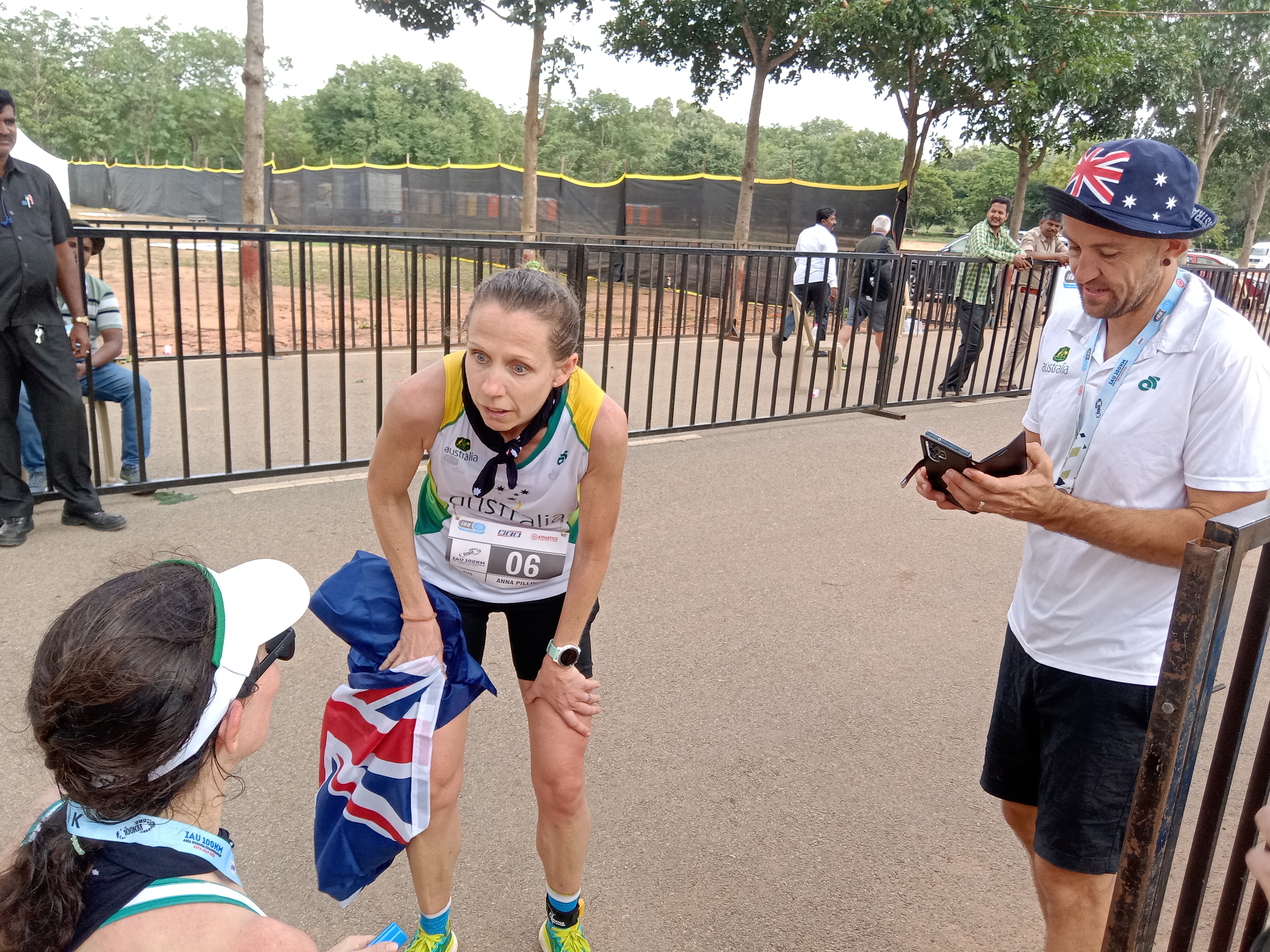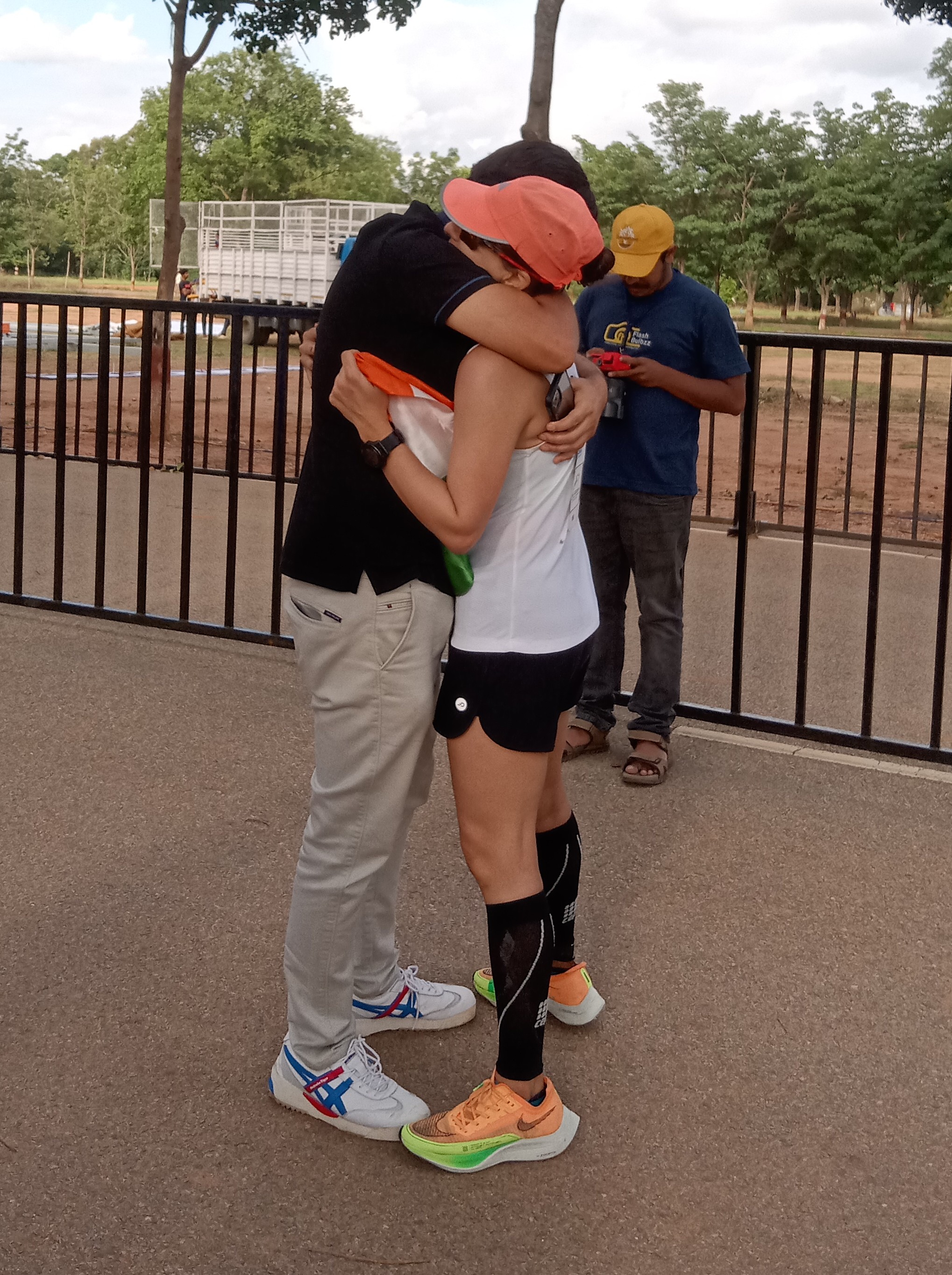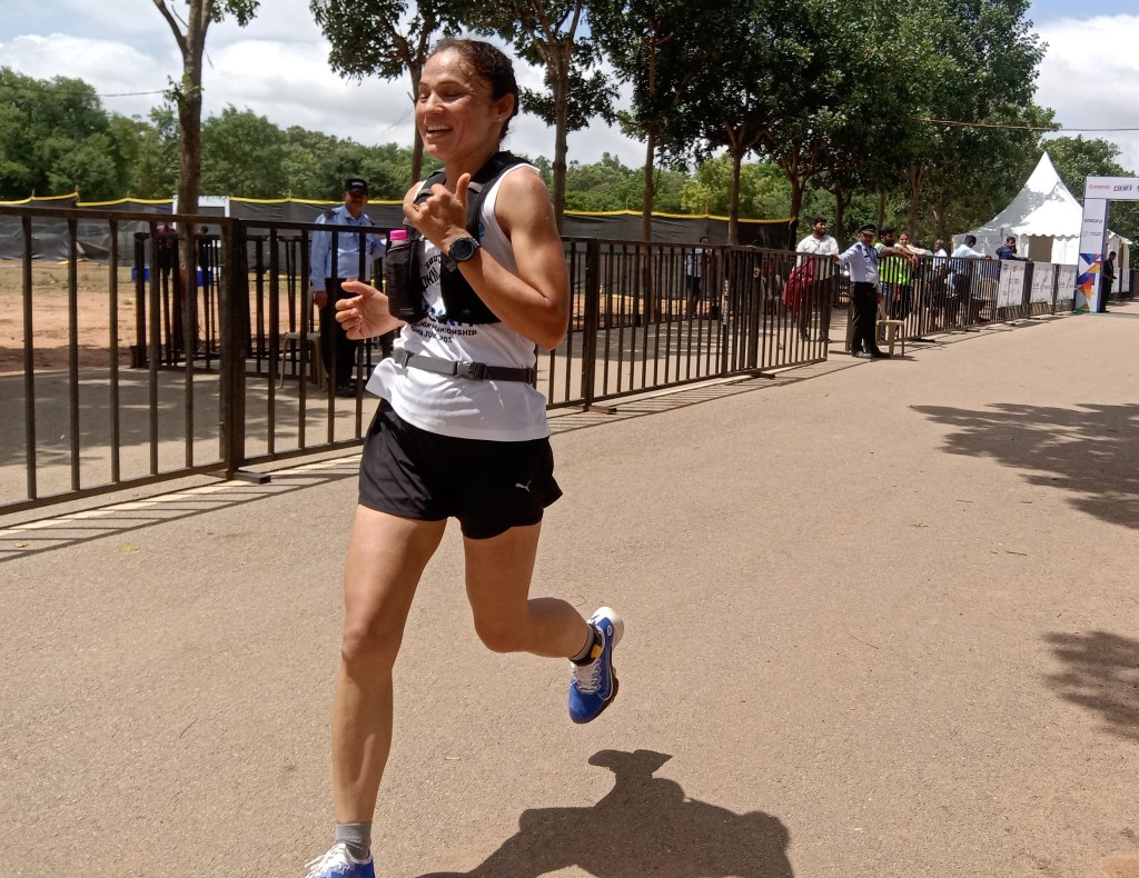 Amidst all the competition, there was a lovely example of cooperation and sharing. In ultrarunning, each team’s support crew plays a crucial role; they make sure they know their runners well, cater to each athlete’s needs on race-day and support them with nutrition and hydration. Mongolian ultrarunner, Lkhagva-Erdene Namkhaidorj, out on her first international event and only the second 100km-race of her life, had reached Bengaluru without anyone to support her during the run. Alan, who was supporting Shannon-Leigh Litt of New Zealand, decided to support the Mongolian runner too. The two teams shared one tent offering the required support facilities. As Lkhagva-Erdene Namkhaidorj completed her race, it was Alan who showed up to greet her at the finish line, Mongolian flag in hand for her to wrap herself in.