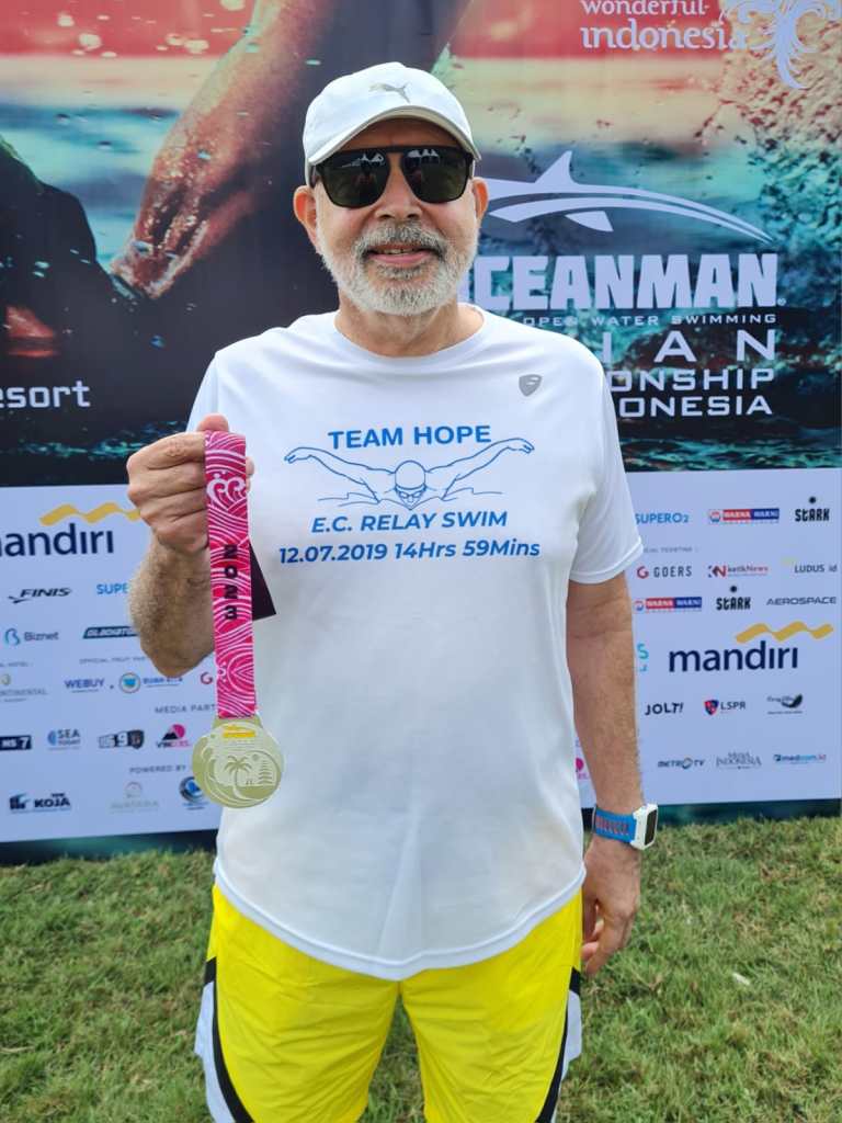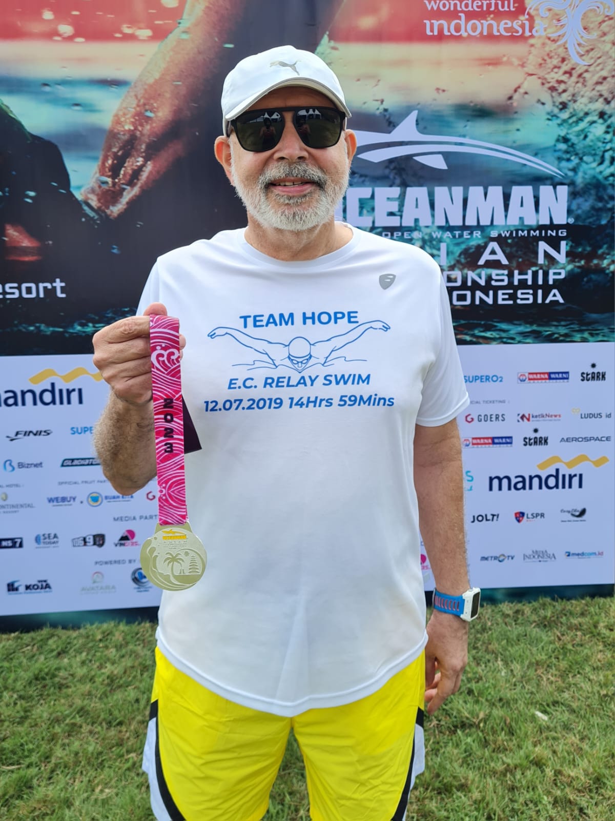 Apart from having done solo and relay swims in the triathlon, I have participated in several open water swim events. Some of them: Goa Swimathon, Thonnur Swimathon, Kasersai Swimathon, Gateway –Vashi Swim Relay, Sunkrock – Gateway solo swim, English Channel relay swim and most recently the 5km race at the Oceanman Asian Championship in Bali.