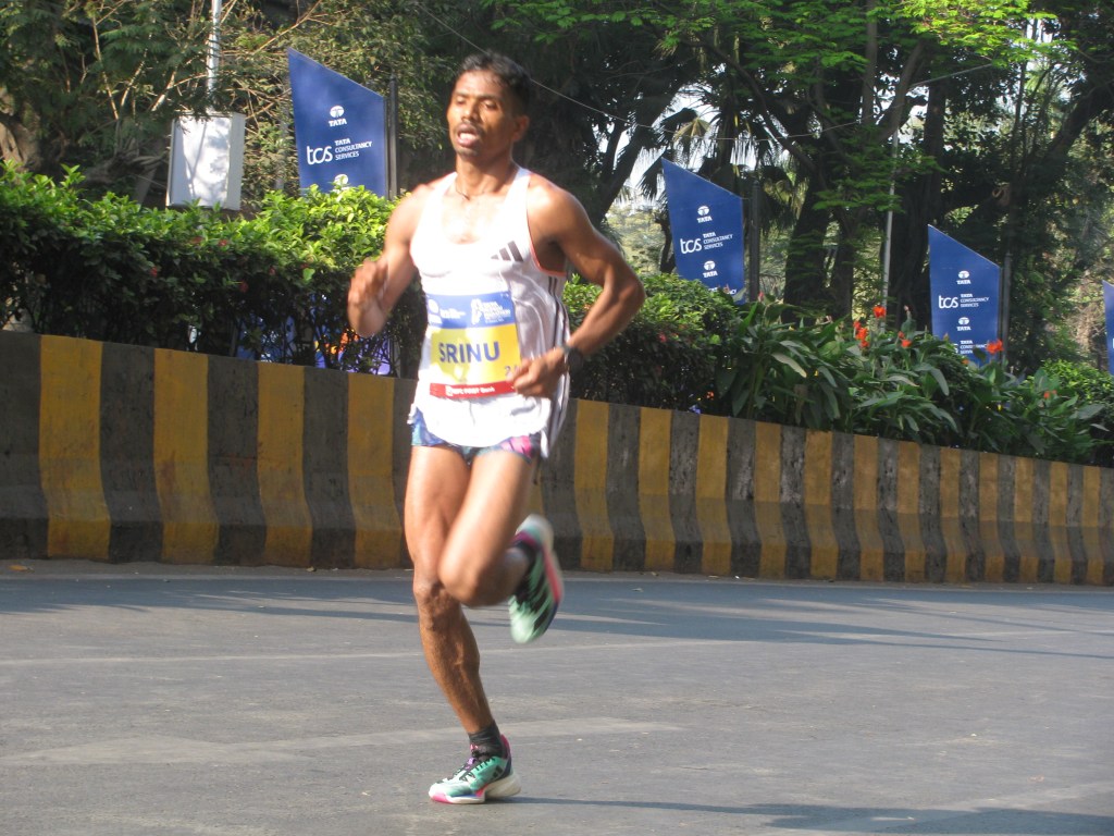 Sunday’s run signified a return to podium finish in Mumbai, for Srinu Bugatha. A former winner among Indian elites at the Tata Mumbai Marathon (TMM), in 2023, he had however finished fifth among Indian elite men with a time to finish of 2:23:05. Speaking to this blog a couple of days after the 2024 race, Srinu said that he had suffered from a hamstring injury for much of the previous year. He had October, November and December and events therein to get ready for 2024 TMM. According to him, on January 21, race day of the 2024 edition of TMM, he started off well and could maintain a pace that was designed to cover the distance in two hours 15 minutes, till around the 35th kilometer. The weather was cooler than usual and supportive. However, over the final three to four kilometers of the course, Srinu’s pace declined. It showed in his splits – 18.7 kilometers per hour, 18.8, 18.7 and 18.5. He emerged winner among Indian elites with timing of 2:17:29. The elite athlete is now focused on improving his timing further and has his eyes set on suitable races overseas.