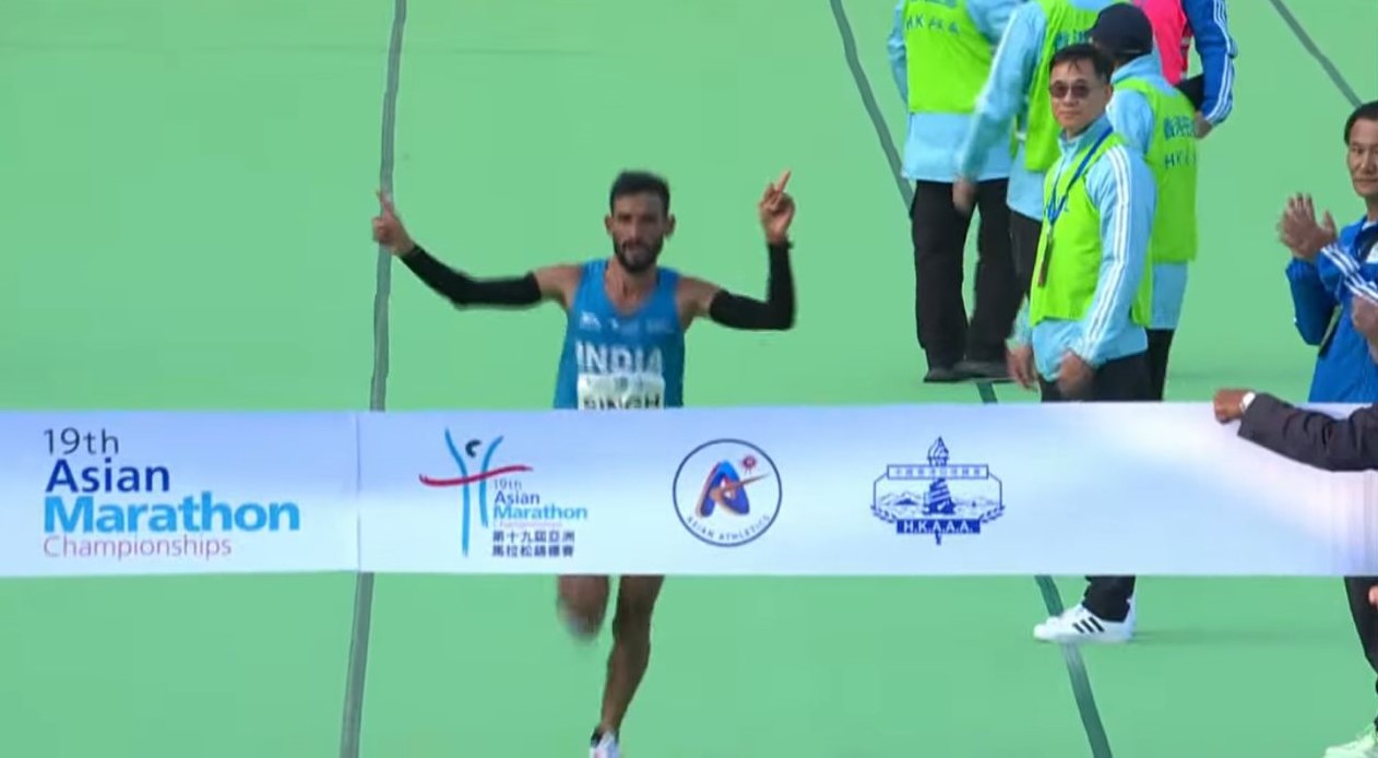 Hours after the 2024 TMM, Sher Singh was a picture of happiness as he voluntarily donned medal and head gear to pose for a picture. In the run-up to the event, the Rajasthan Police sub inspector had seen his focus distracted and his training nudged sideways a bit as he was forced to participate in a cross-country competition. Cross-country events span shorter courses compared to the marathon and typically due to that, entail more speed. That upset the sort of training he would have liked to have for TMM. He found the conditions in Mumbai on race day, quite agreeable. It wasn’t very warm. His run proceeded well for about 30-34 kilometers. Then he started to get cramps in his hamstrings and calf muscles. Unlike Gopi, Sher Singh didn’t require stopping and stretching. But his progress was slowed down. Sher Singh’s splits were – 18.8 kilometers per hour, 18.8, 18.6 and 18.2. He finished third among Indian elite men with a timing of 2:19:37. Sher Singh said that he would like to participate in races overseas.