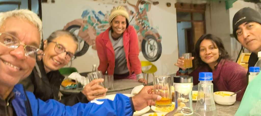 After the finish, I went straight to a stretcher for a powernap. Apparently, I had finished third. I couldn’t care less. Friends were peeping through the window of the recovery tent. I just waved at them, closed my eyes and only stood up for the award ceremony. The gifts were amazing: finishers shawl, medal and token and then a winners’ shawl, bronze medal and a trophy and prize money….! My main concern was, how to get this to the hotel with those four race bags. The Stride With Girish Bindra group – the loudest in Leh – helped me.