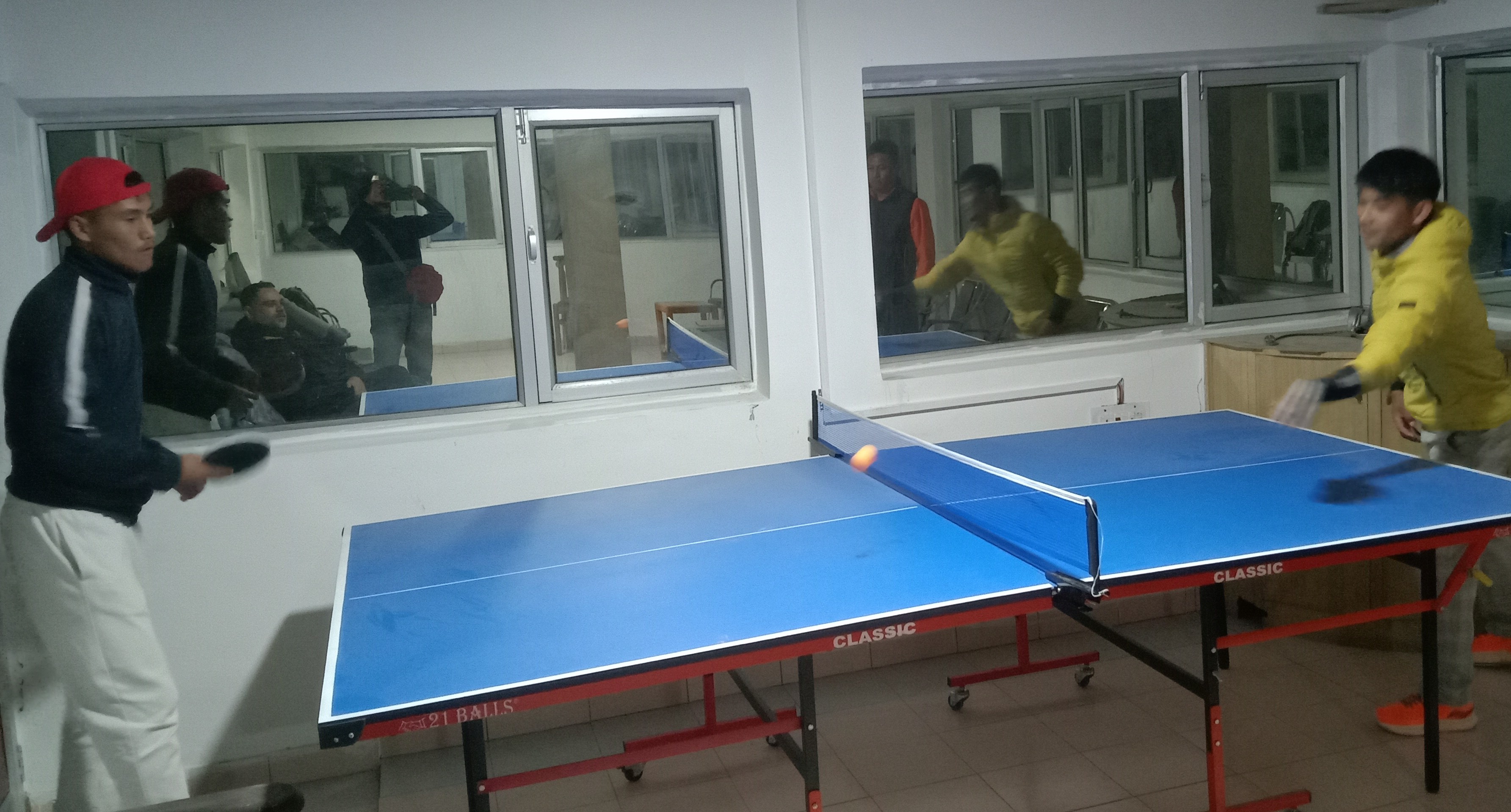 September 6 night; Kundan and Stanzen relax over a round of table tennis at Kyagar (photo: Shyam G Menon)