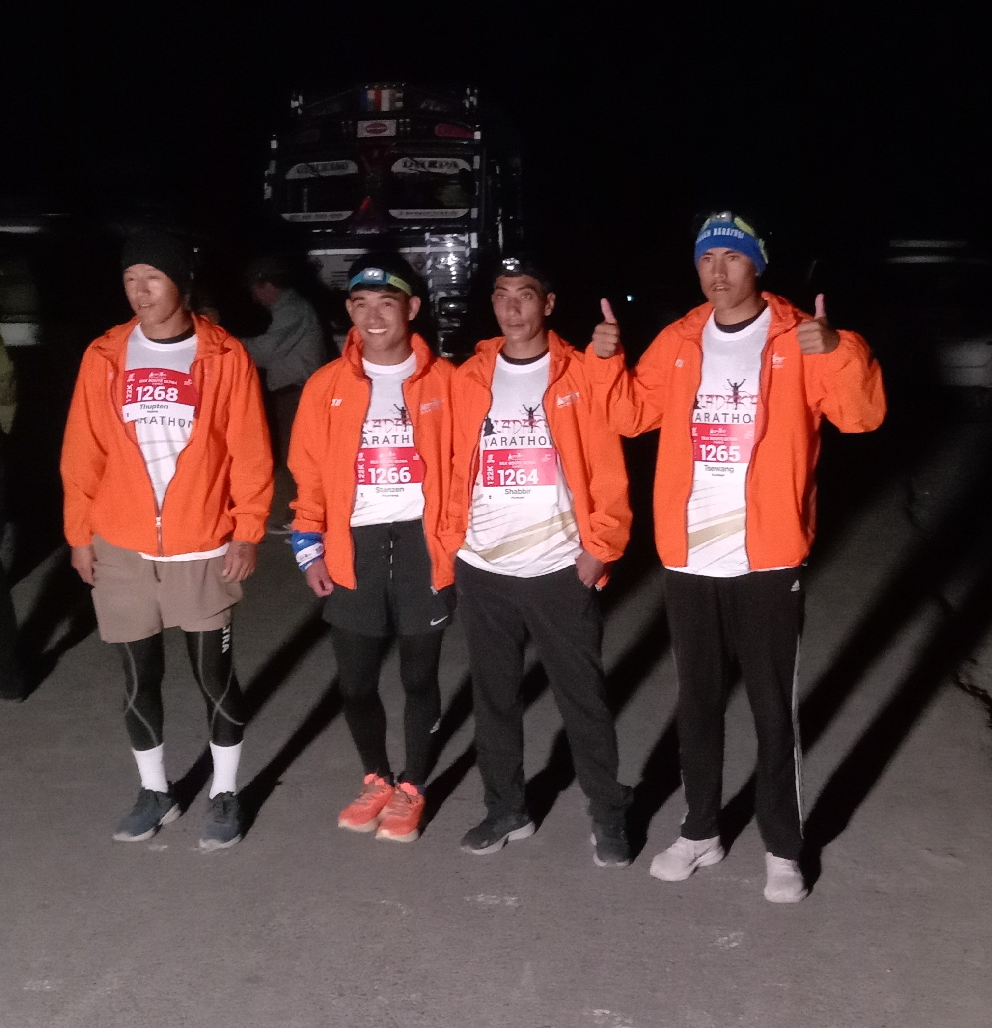 At 8.30PM on September 7, there were four elite runners assembled at the SRU start line in Kyagar. There was the race favourite, Shabbir. Giving him company, were the two younger runners – Stanzen and Kundan. All three were from Ladakh Scouts of the Indian Army, the regiment that has traditionally dominated the podium at the Ladakh Marathon. The fourth person at the start line, was Thupten Nyima of the Special Frontier Force (SFF), a regiment composed mostly of Tibetans living in India. In 2022, Thupten had finished eighth among men in SRU. Interestingly, the 2023 edition of the Ladakh Marathon was accompanied by the buzz of various regiments of the army with its runners enrolled in the event, likely to put up keen mutual competition. In pre-race conversations, Shabbir had said when asked, that the Ladakhi runners usually stick together till the final phase of SRU. Into the final stretch, competition amongst them picks up. Within the first 10 kilometres or so of the elites taking off in the 8.30PM late-start, Shabbir and Stanzen set a fast pace with Thupten matching it. This went on for about an hour. Thereafter, Thupten appeared to tire from the fast pace and fell back. Kundan who had kept his own sustainable pace and was trailing the lead group by a sizable margin, slowly narrowed the gap with Thupten. He caught up with the SFF runner, overtook him and thereafter proceeded to close the gap with Stanzen and Shabbir. Eventually, Thupten was left all alone; he looked tired and his pace dropped drastically. For a long time, Hakim in his vehicle moved slowly with Thupten, making sure the runner wasn’t left alone in the pitch black mountain environment. It had been an unexpected development for the race official, one that limited him from proceeding at the pace of the lead pack. He kept checking in with Thupten to gauge how he was feeling. A kilometre or two before Khalsar, Hakim went ahead and dispatched another team back to check on the tired runner. By then, Thuptan had quit the race; he reached Khalsar in the very same vehicle sent to accompany him. SFF’s continued presence in the men’s category of the race, now stood restricted to 48-year-old mountaineer-runner, Kunchok Tenpa, who in the tradition of senior runners (including locals) running with the 7PM batch, was at that point in time, way ahead.