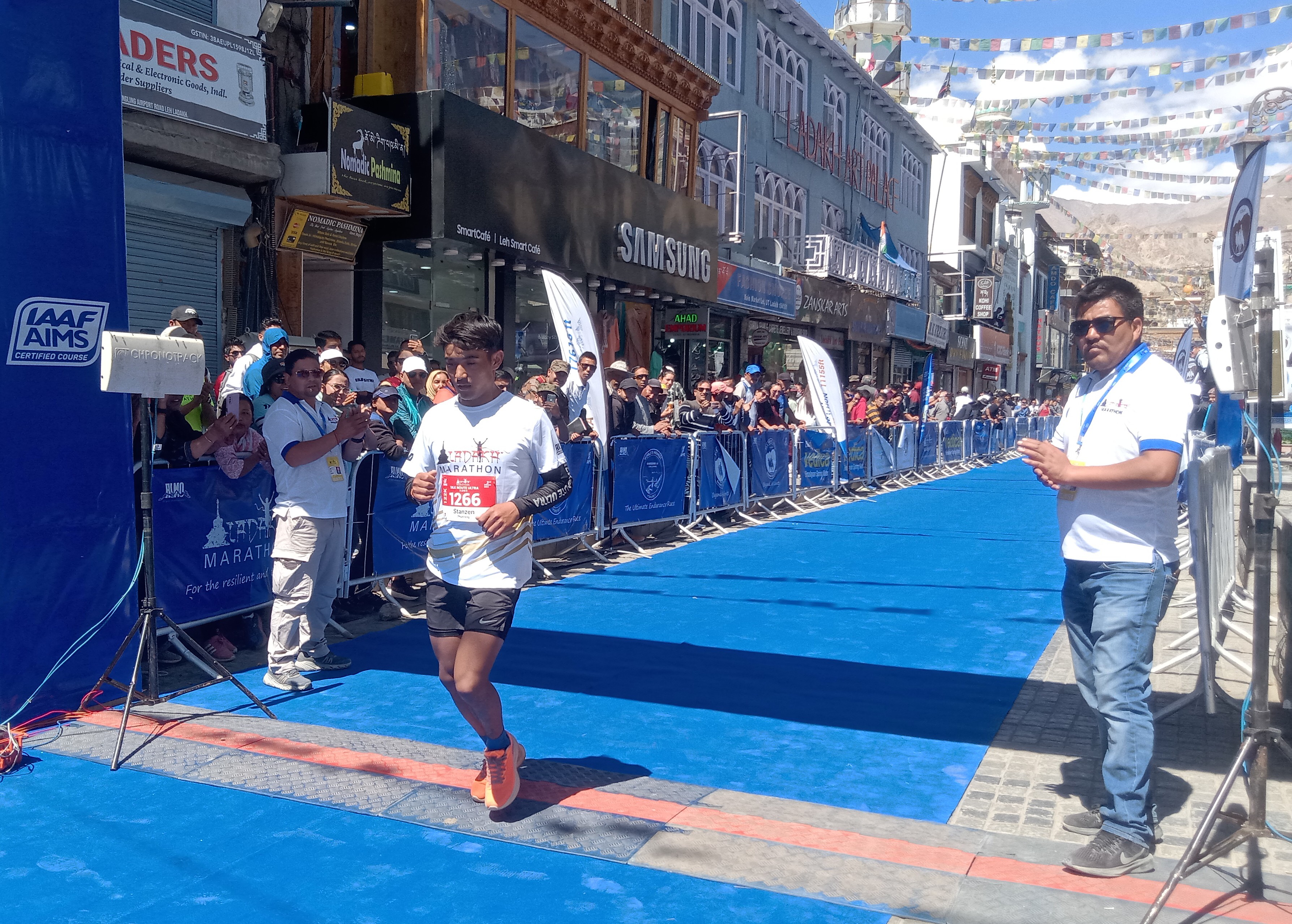 Stanzen Phuntsog at the finish line (photo: Shyam G Menon)